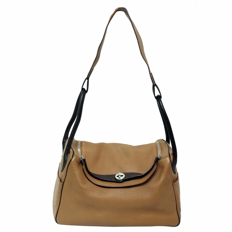This Lindy bag by Hermes makes an elegant addition to your wardrobe. This brown Lindy bag is crafted from Clemence leather into a cube silhouette and complimented leather lining and two stylish pocket side walls. A centre strap unites its double handles. Spacious interior.
