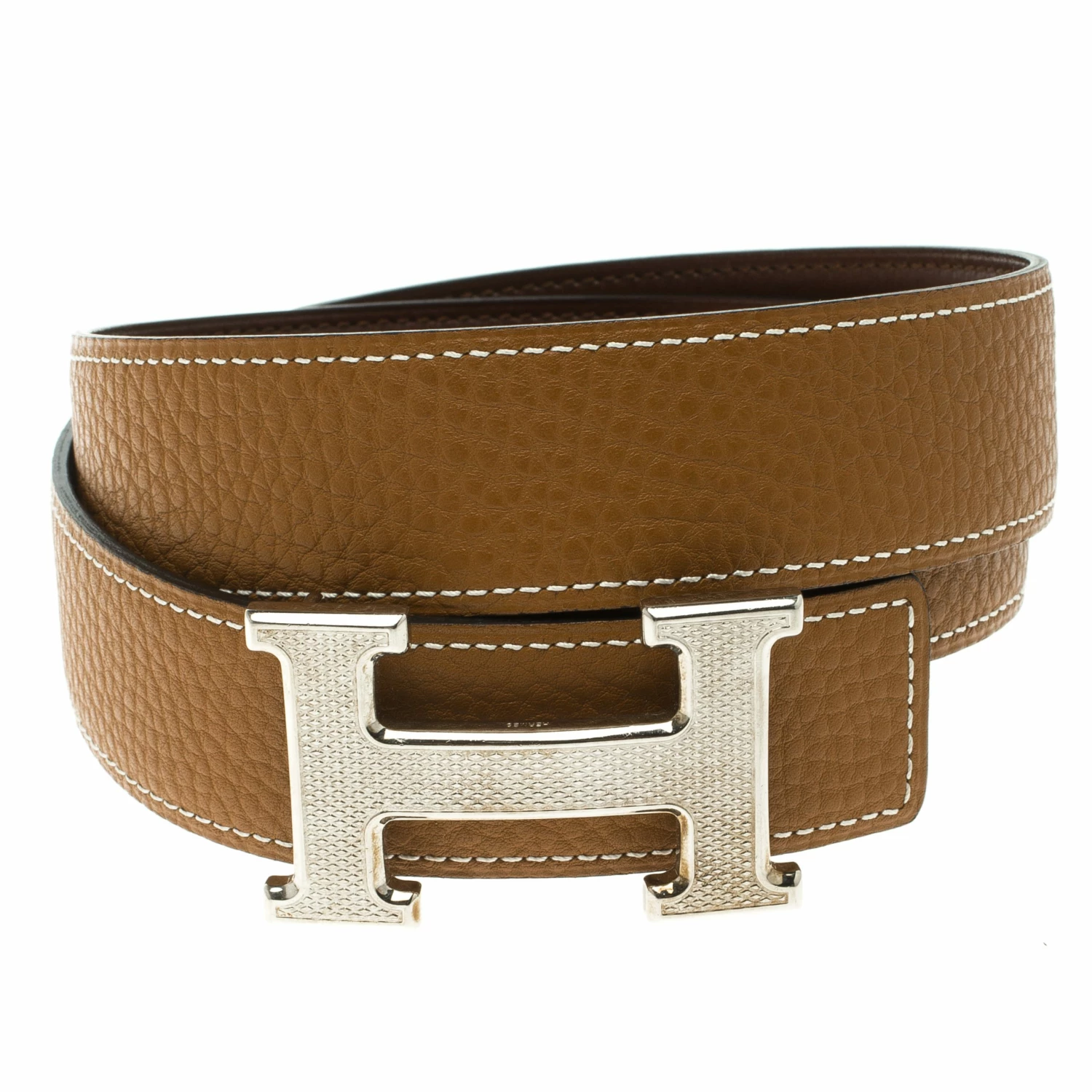 Hermes creations are timelessness and known for its unmistakable designs and elegance. This reversible belt is all you need to style your outfits differently each time. It features a brown outer body with tonal stitching reversing to a dark brown interior with white contrast stitch detailing accompanied by a silver ‘H’ buckle.