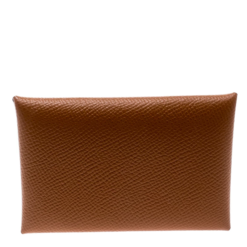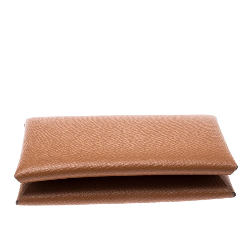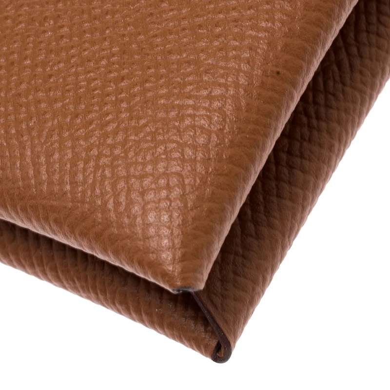 Crafted to perfection, this Hermes purse is both beautiful and functional. Shaped well, the purse has a snap button that opens to show two compartments. It is sized to hold your change with ease and also fit into your handbags.