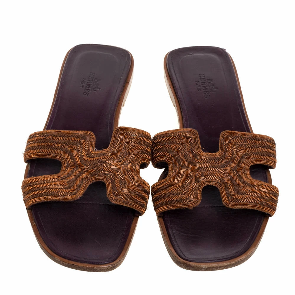 Put your best foot forward this season in these pretty Hermes flats. These brown Oran flats have been crafted from fabric in Italy and they feature the iconic H on the vamps as well as insoles meant to provide comfort at every step. These sandals are sure to attract admirers!