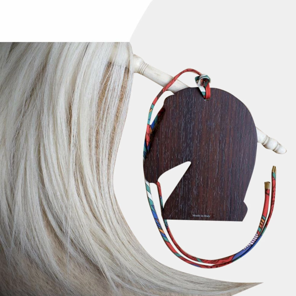 Accessorize your favorite things like a bag, key chain, or even the interior of your room with this iconic Hermes Horse charm. Crafted from premium wood, this brown piece comes with a silk twill cord.