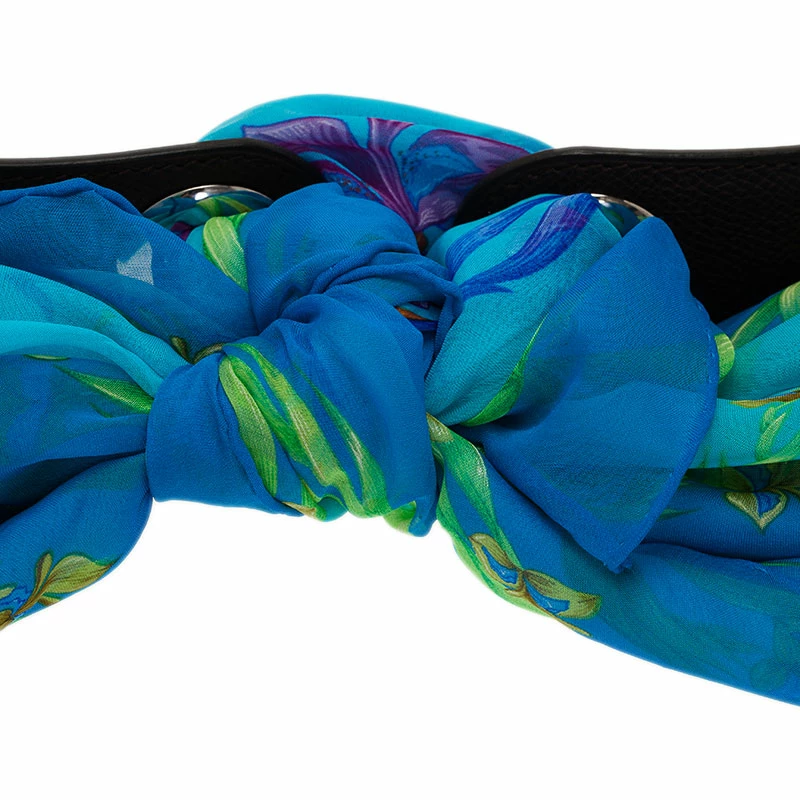 This belt makes a stylish accessory for your outfits. Crafted from smooth brown leather, this scarf belt displays excellent stitching and finishing. The classy blue scarf to tie the belt is the highlight of this accessory.