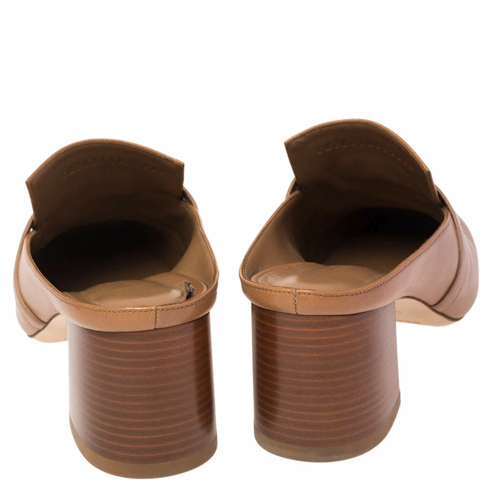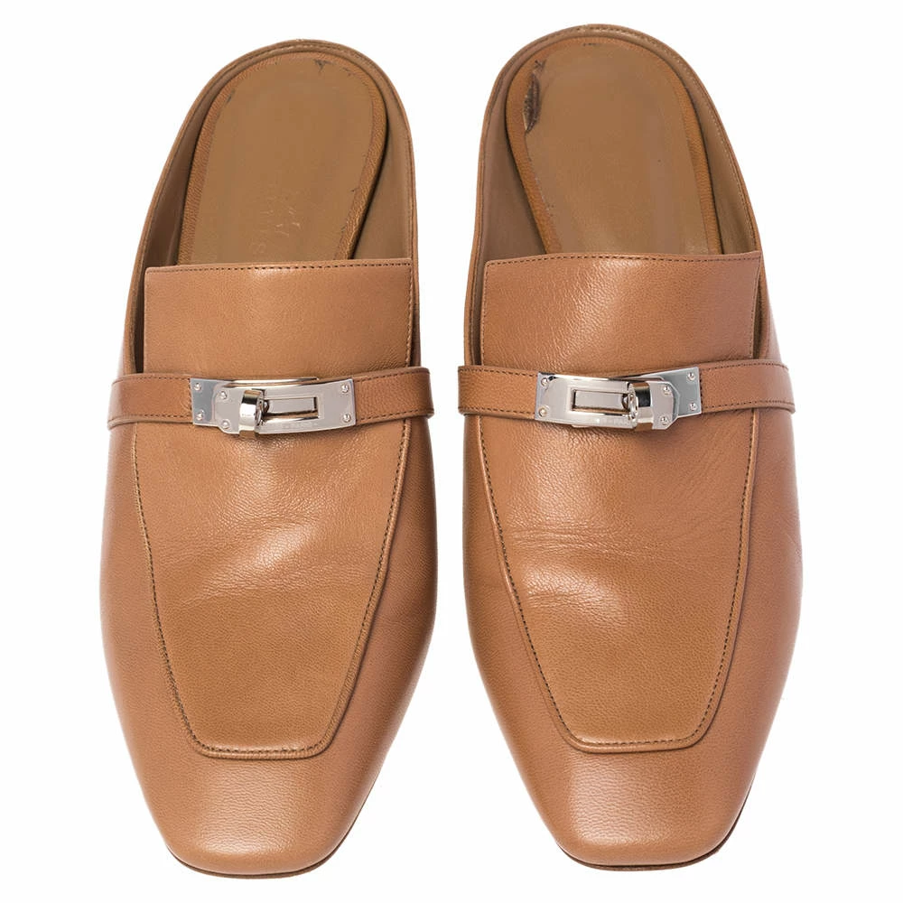 Designed in a loafer style, these Blossom mules are from the house of Hermes. They are beautifully crafted in brown leather and detailed with the signature twist-lock on the uppers. Slip these block-heel mules on for a comfortable look.