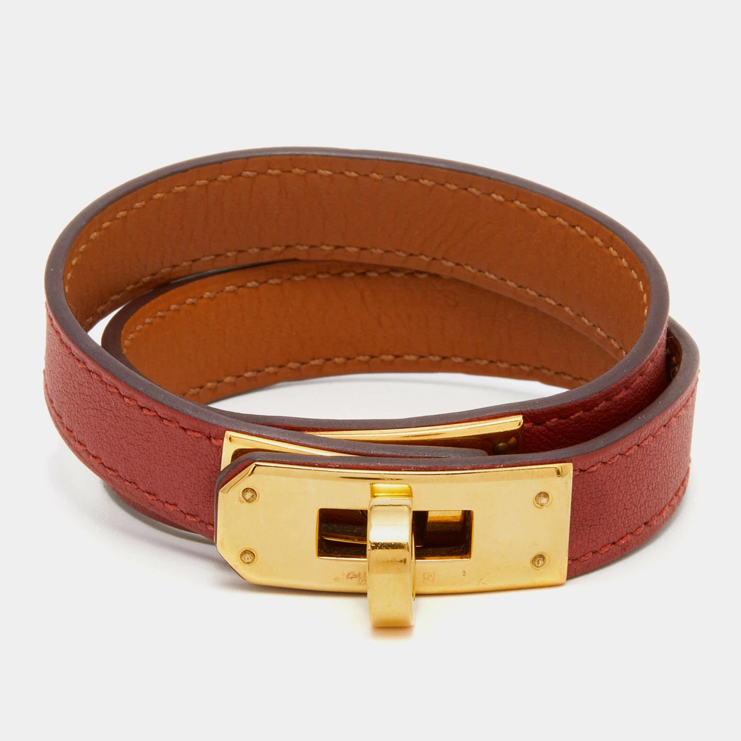This Hermès Double Tour wrap bracelet is a chic accessory that can be paired with everything, from causals to evening outfits. Crafted from leather in a brown shade, it is beautified with a Kelly twist closure in gold-plated metal. The bracelet has a long strap that wraps twice around your wrist.