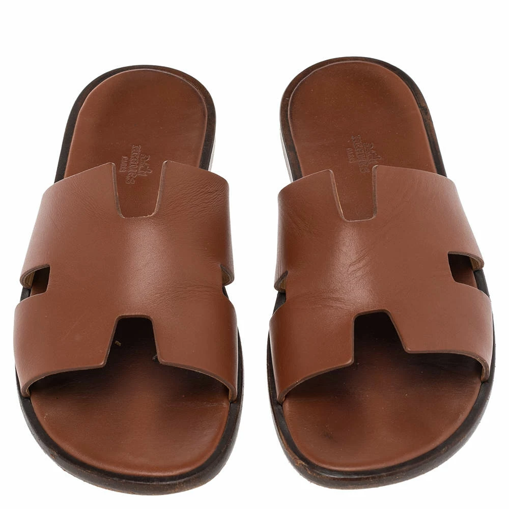 Hermes is a brand that epitomizes art and all their designs have a luxurious blend of comfort and style. These brown Izmir sandals have been crafted from leather in Italy and feature the iconic H on the vamp, making it easy to slip on over all your casual outfits.