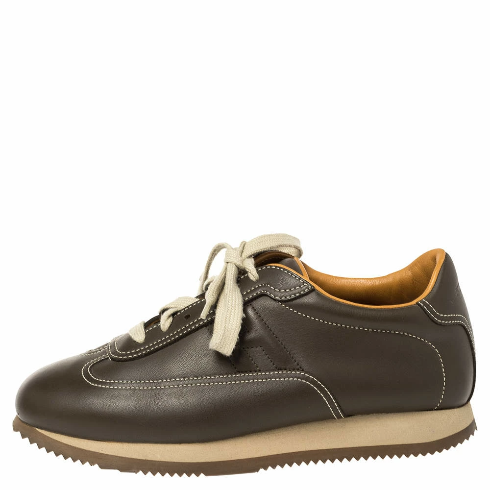 These brown sneakers from Hermes are perfect for days when you wish for comfort and style! The sneakers are crafted from leather and feature round toes, lace-ups on the vamps and tough rubber soles. They are finished with H details on the sides.