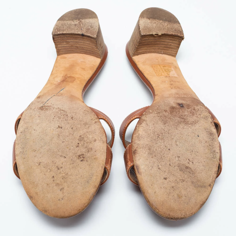 These Oasis sandals from the House of Hermes are all about flaunting eternal class and elegance! They are crafted from brown leather on the exterior. They feature the signature H cut-out on the upper, open toes, and 5 cm block heels. Flaunt your luxe style with these gorgeous Hermes sandals.