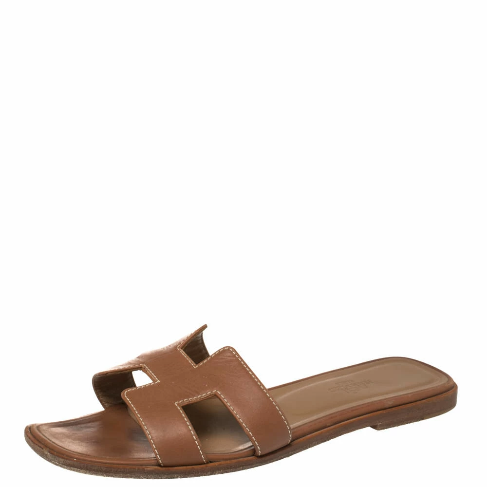 Put your best foot forward this season in these pretty Hermes sandals. These brown Oran sandals have been crafted from leather in Italy and they feature the iconic H on the vamps as well as insoles meant to provide comfort at every step. These sandals are sure to attract admirers!