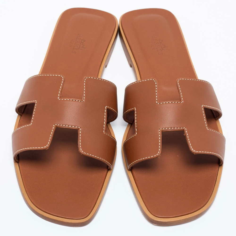 Add the iconic Hermès Oran sandals to your shoe collection with this pair. These brown Oran flat sandals have been crafted in Italy using leather and they feature the iconic H on the vamps and lined insoles to provide comfort at every step.