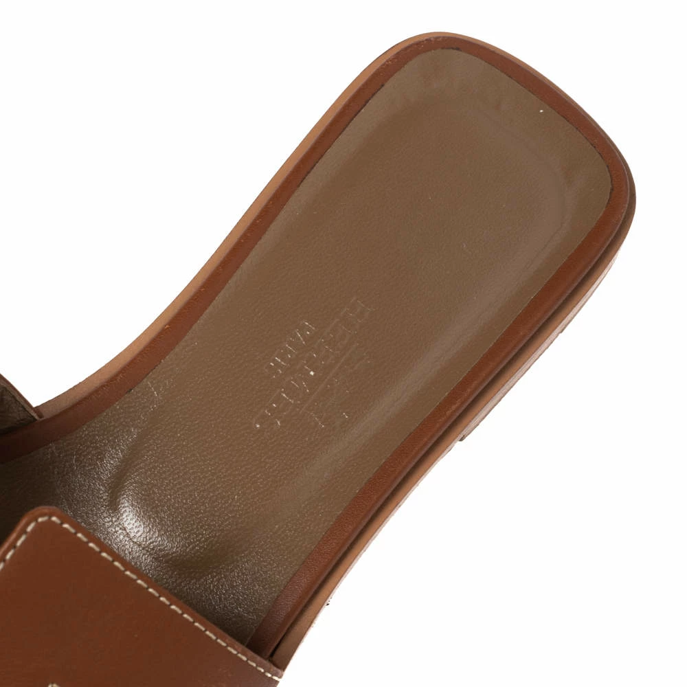 Put your best foot forward this season in these pretty Hermes sandals. These brown Oran sandals have been crafted from leather in Italy and they feature the iconic H on the vamps as well as insoles meant to provide comfort at every step. These sandals are sure to attract admirers!