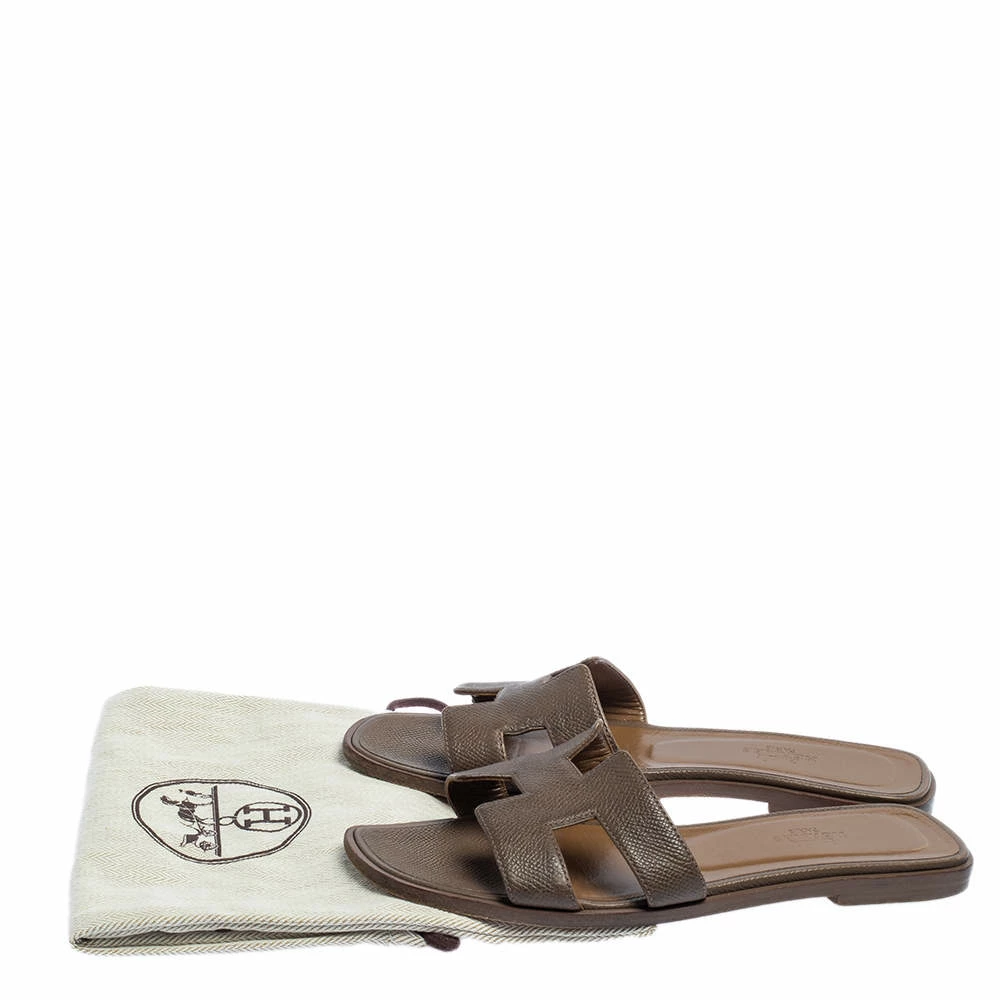 Put your best foot forward this season in these pretty Hermes sandals. These brown Oran sandals have been crafted from leather in Italy and they feature the iconic H on the vamps as well as insoles meant to provide comfort at every step. These sandals are sure to attract admirers!