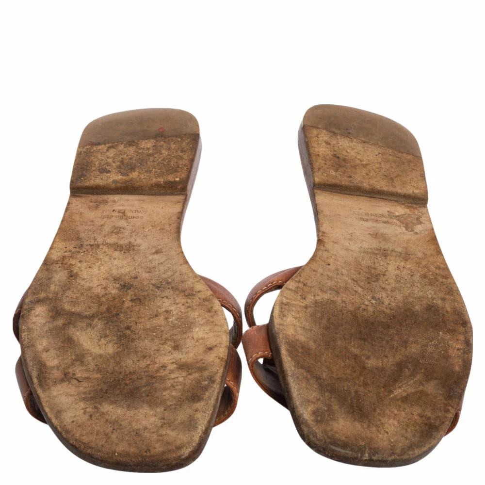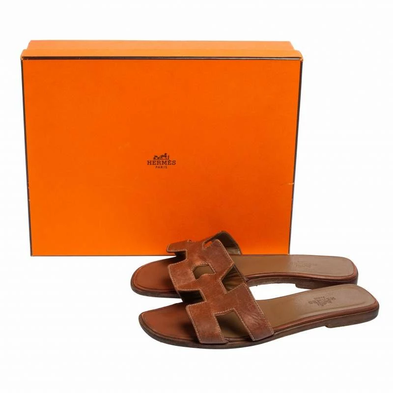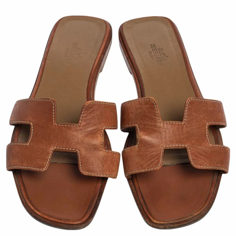 Put your best foot forward this season in these pretty Hermes sandals. These brown Oran sandals have been crafted from leather in Italy and they feature the iconic H on the vamps as well as insoles meant to provide comfort at every step. These sandals are sure to attract admirers!