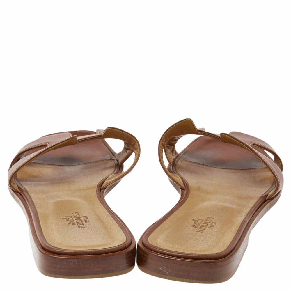 Put your best foot forward this season in these pretty Hermes sandals. These brown Oran sandals have been crafted from leather in Italy and they feature the iconic H on the vamps as well as insoles meant to provide comfort at every step. These sandals are sure to attract admirers!