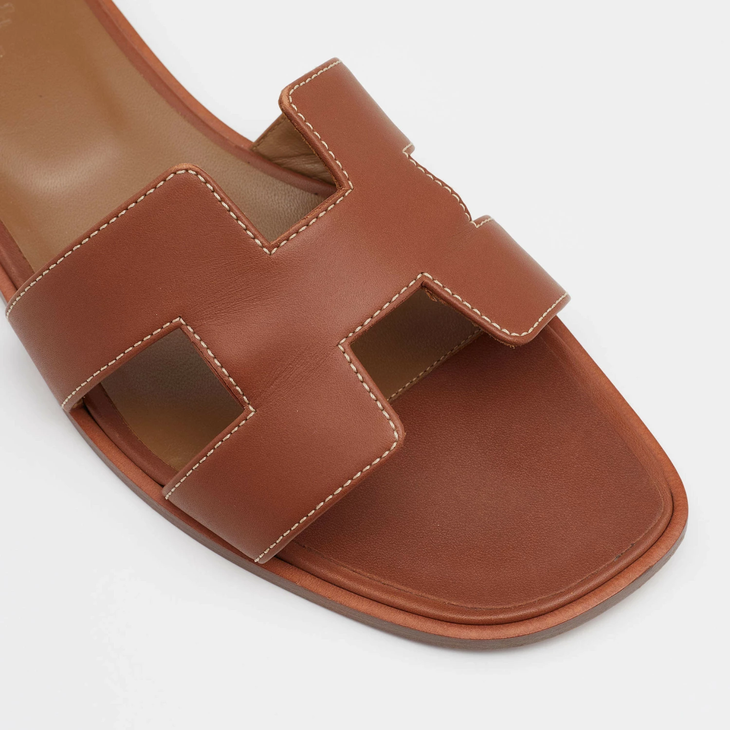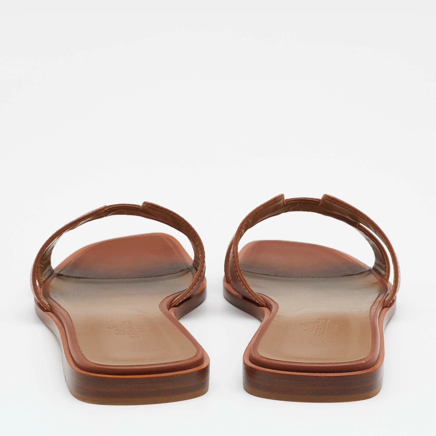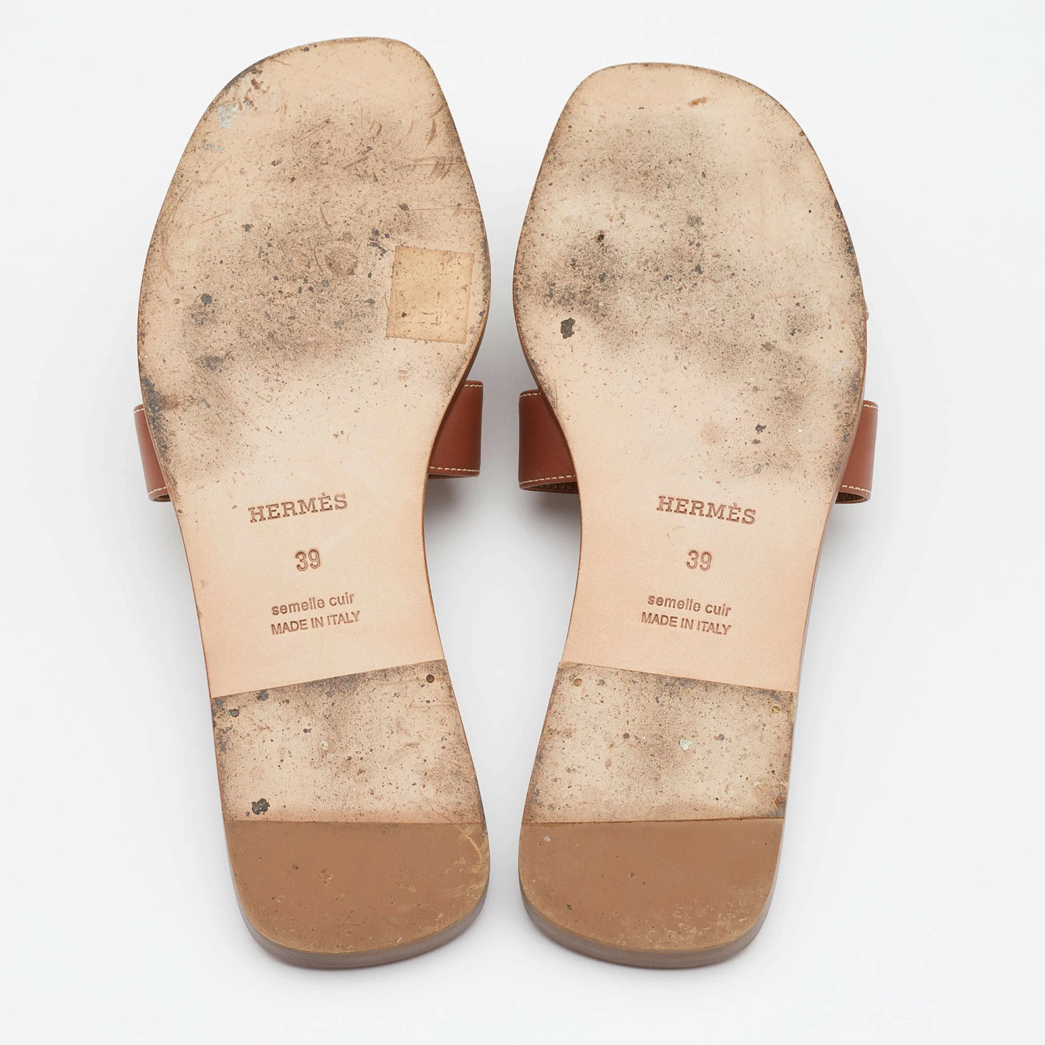 Add the iconic Hermès Oran sandals to your shoe collection with this pair. These brown-hued flats have been crafted in Italy, and they feature the iconic H on the vamps and lined insoles in leather to provide comfort at every step.