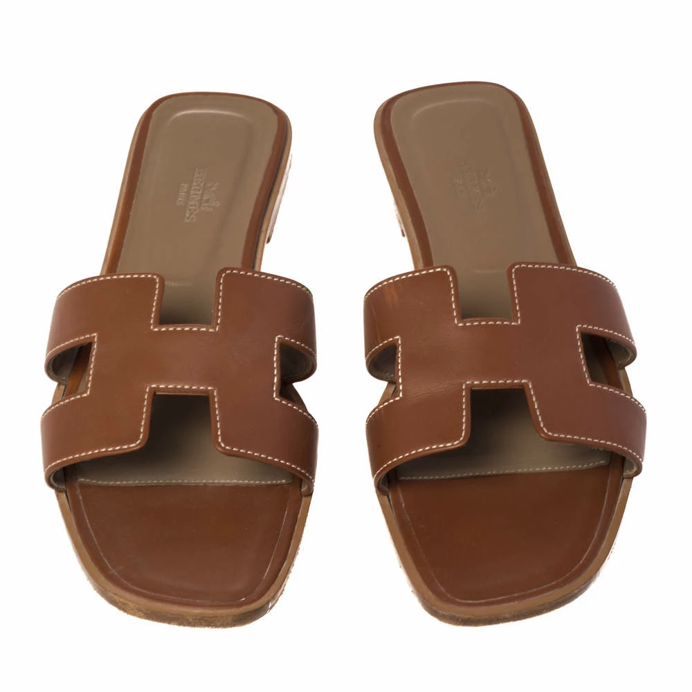 Put your best foot forward this season in these pretty Hermes sandals. These brown Oran sandals have been crafted from leather in Italy and they feature the iconic H on the vamps as well as insoles meant to provide comfort at every step. These sandals are sure to attract admirers!