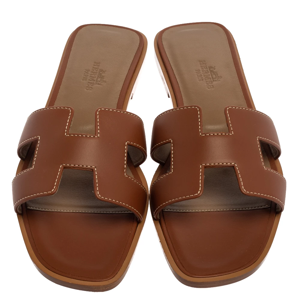 Put your best foot forward this season in these pretty Hermes sandals. These brown Oran sandals have been crafted from leather in Italy and they feature the iconic H on the vamps as well as insoles meant to provide comfort at every step. These sandals are sure to attract admirers!