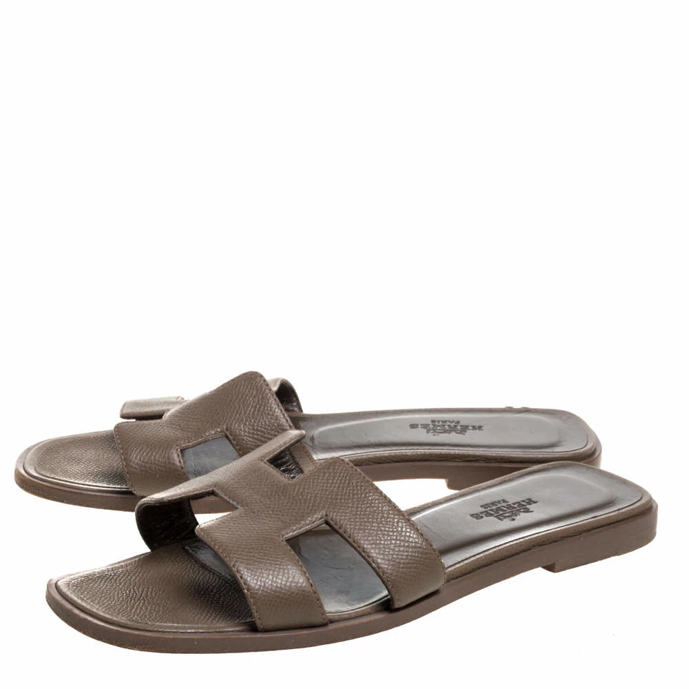 Put your best foot forward this season in these pretty Hermes flats. These brown Oran flats have been crafted from leather in Italy and they feature the iconic H on the vamps as well as insoles meant to provide comfort at every step. These flats are sure to attract admirers!