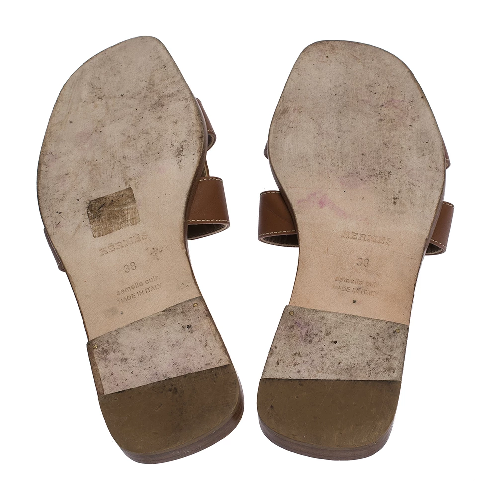 Put your best foot forward this season in these pretty Hermes sandals. These Brown Oran sandals have been crafted from Leather in Italy and they feature the iconic H on the vamps as well as insoles meant to provide comfort at every step. These sandals are sure to attract admirers!