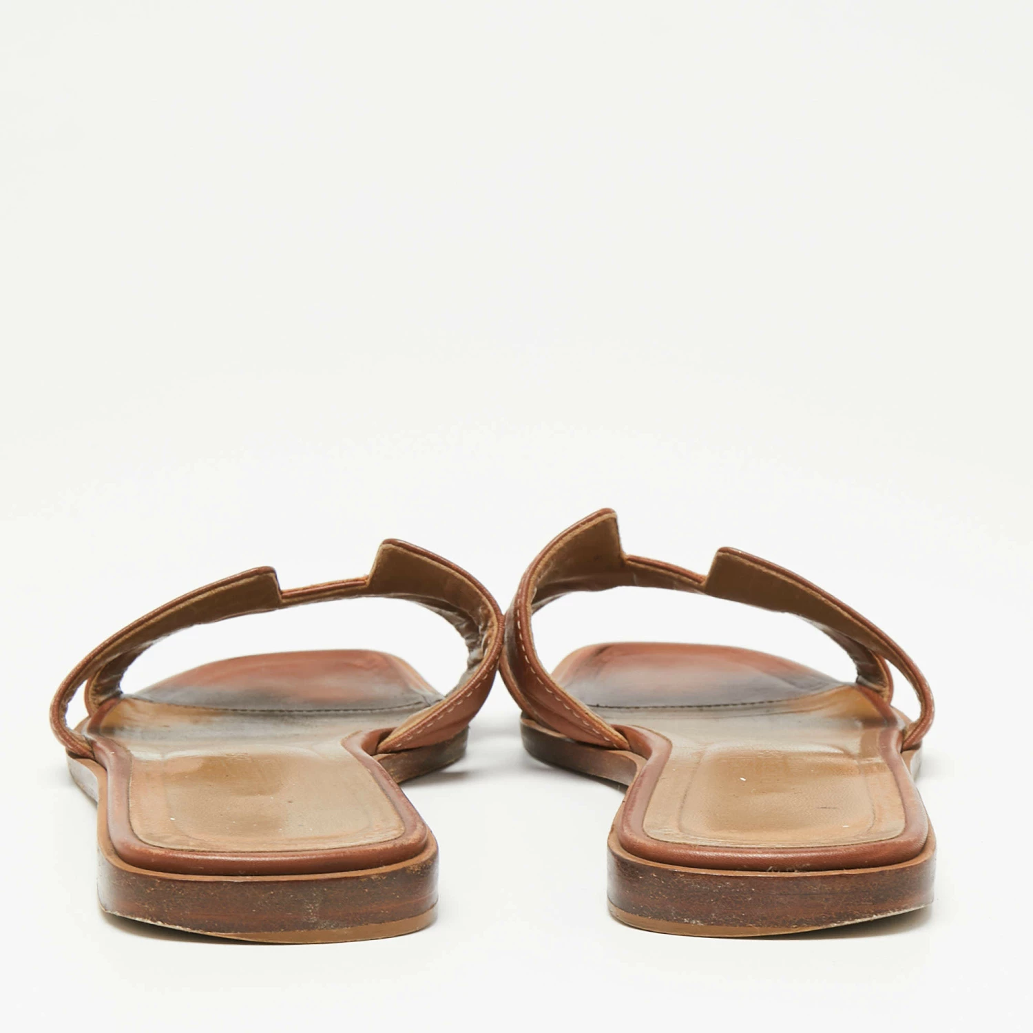 Put your best foot forward this season in these pretty Hermes sandals. These brown Oran sandals have been crafted from leather in Italy and they feature the iconic H on the vamps as well as insoles meant to provide comfort at every step. These sandals are sure to attract admirers!