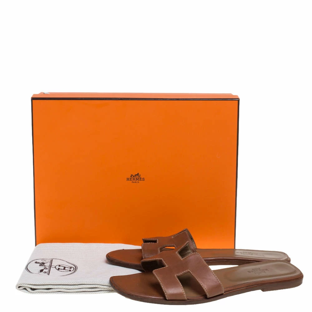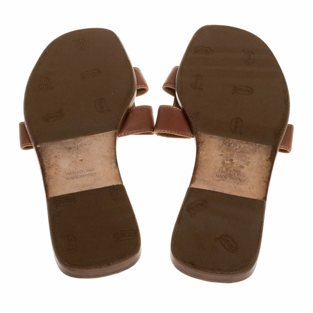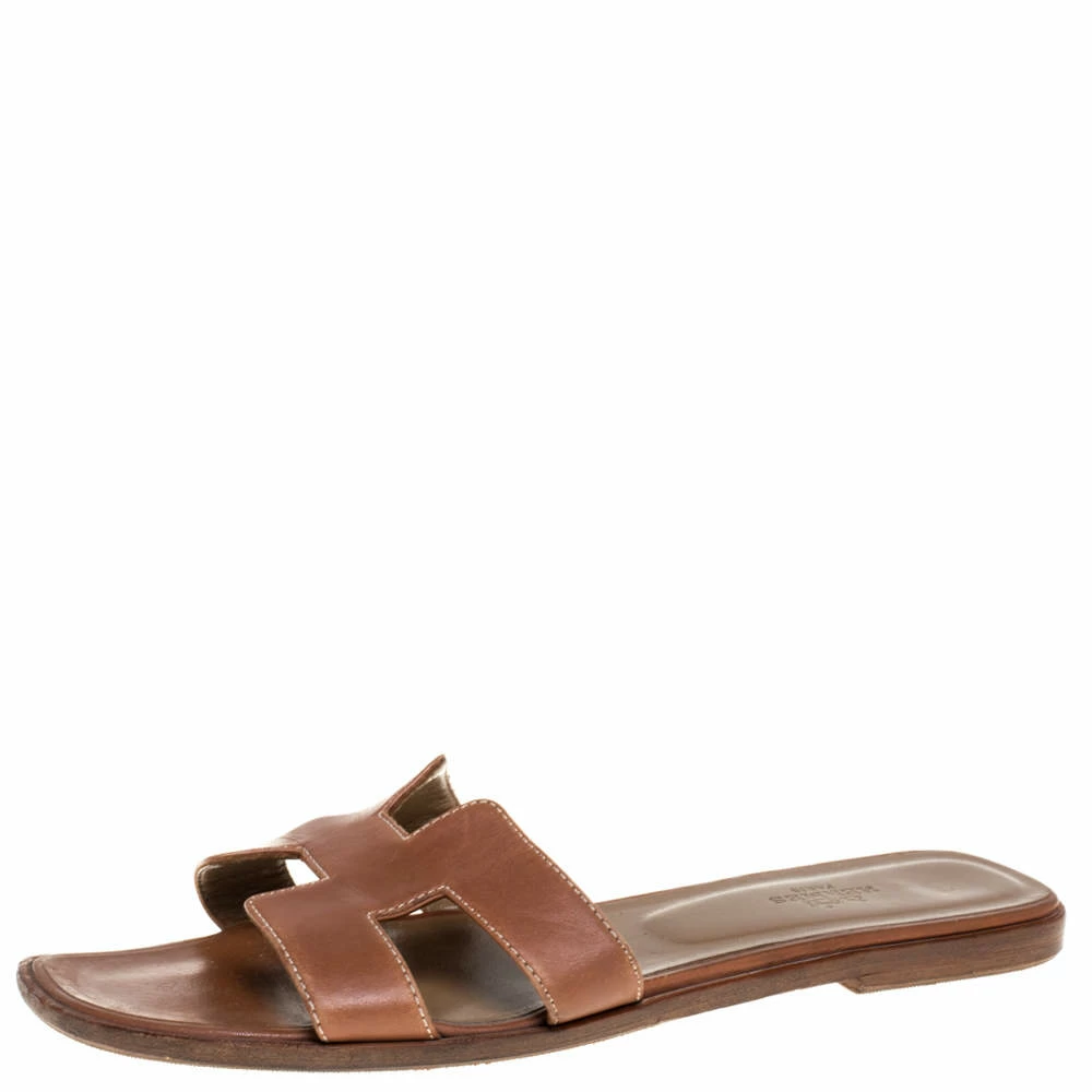 Put your best foot forward this season in these pretty Hermes sandals. These brown Oran sandals have been crafted from leather in Italy and they feature the iconic H on the vamps as well as insoles meant to provide comfort at every step. These sandals are sure to attract admirers!