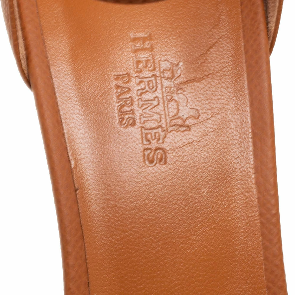 These Premiere sandals made by Hermès, with their minimalistic style and faultless shape, provide your feet with the best experience. They feature brown-colored leather on the exterior, which is highlighted by silver-toned implements, an ankle strap, heels, and a neatly shaped counter. Pair these sandals with your everyday outfit to create a chic style.