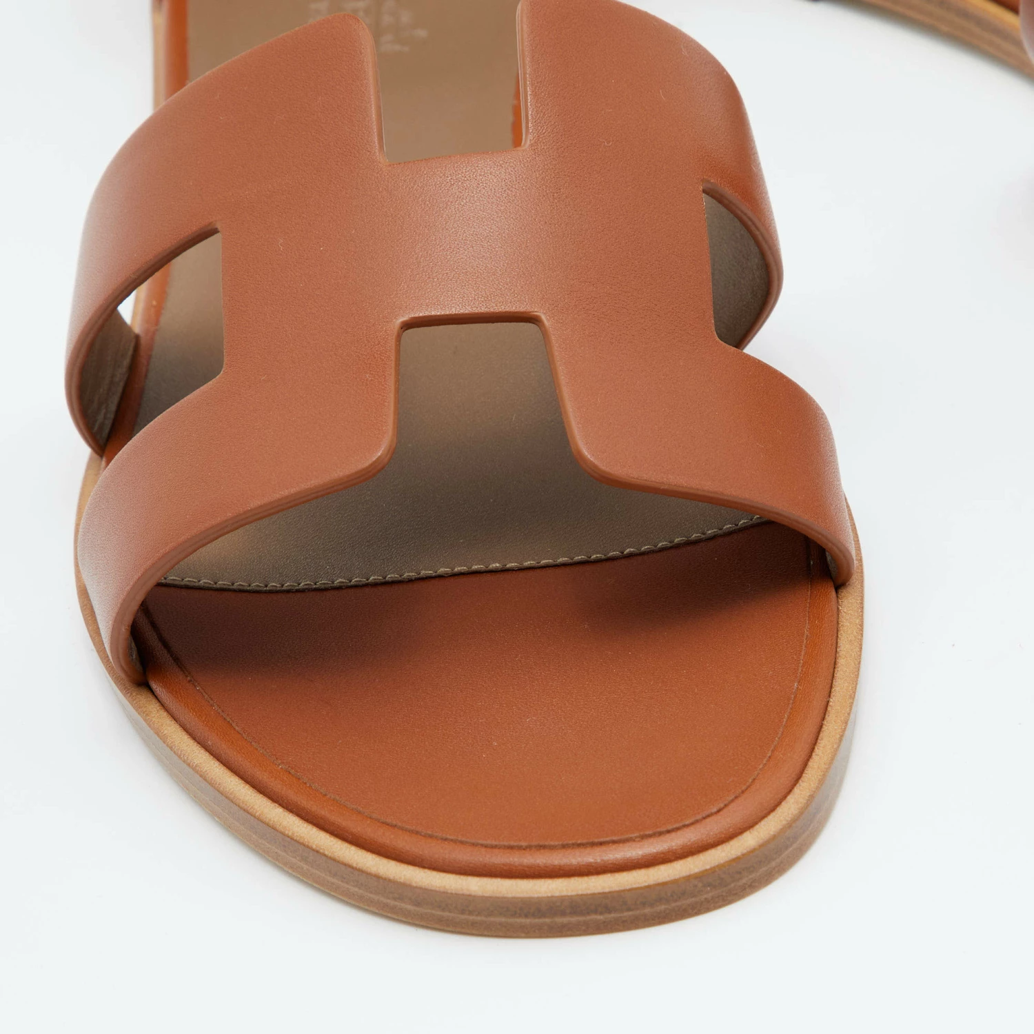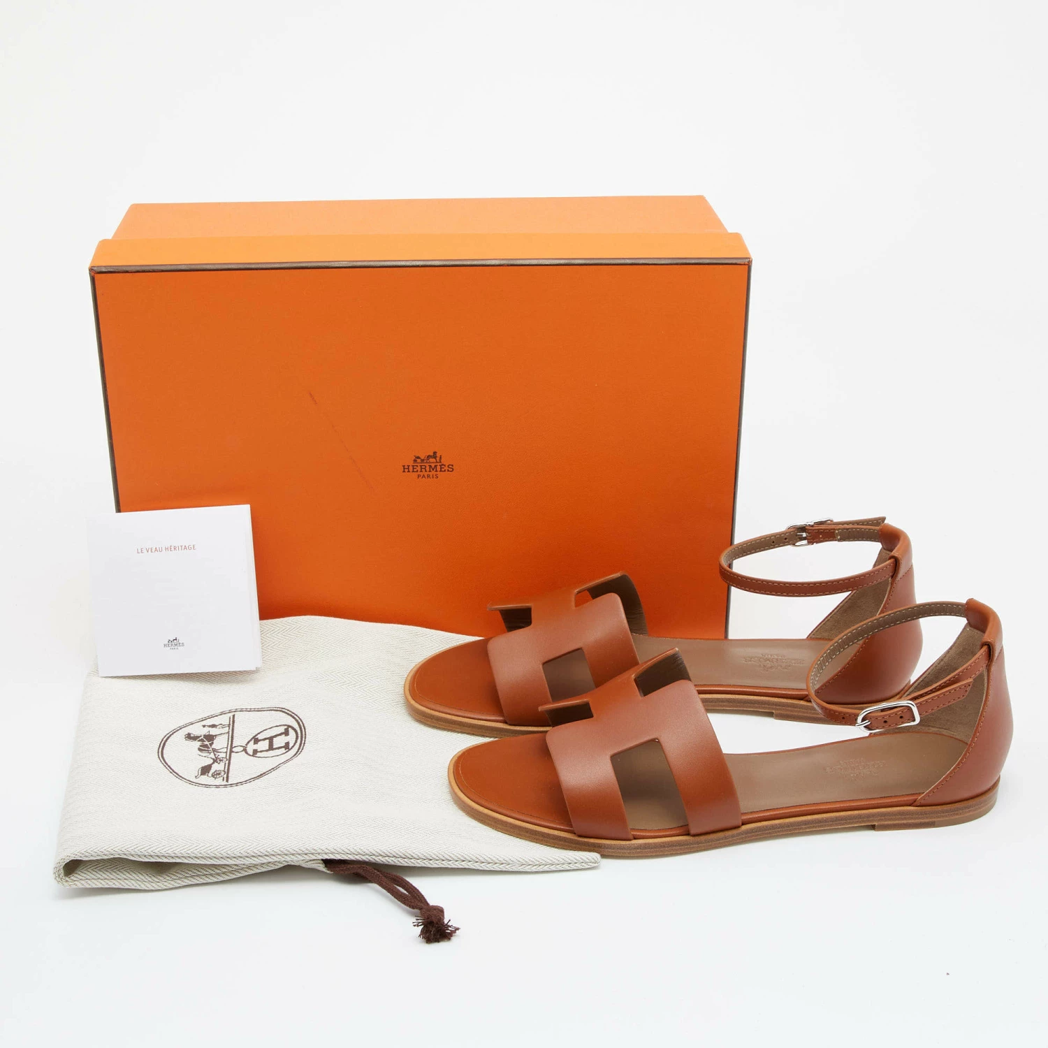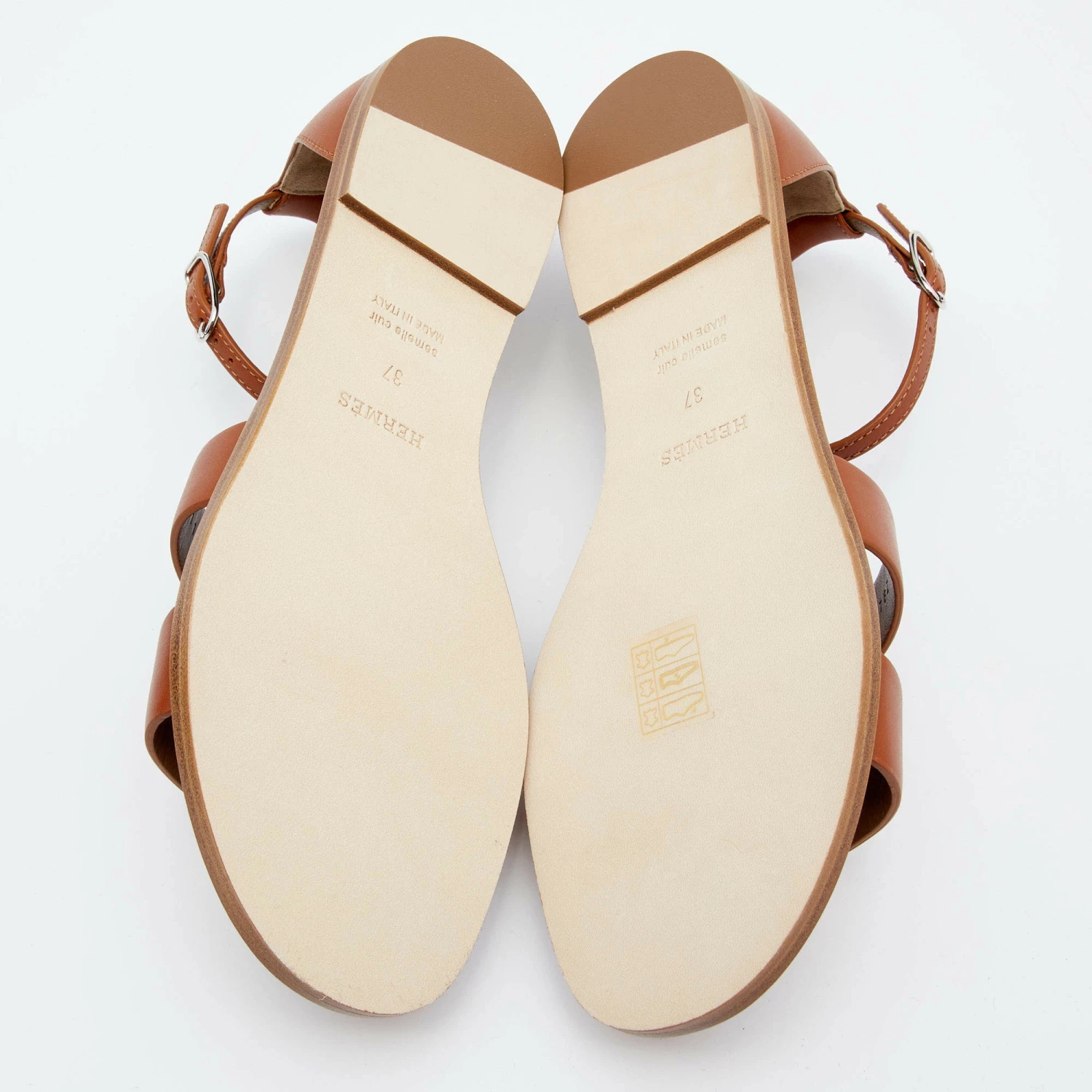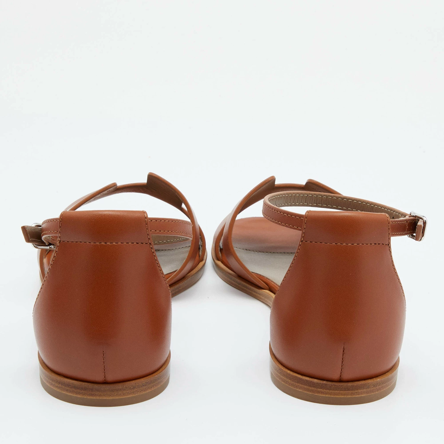 These sandals by Hermes are crafted from brown leather into an open-toe silhouette and added with an H cut on the uppers. Comfortable insoles and simple buckle closure complete the design. This is one pair you will turn to daily!