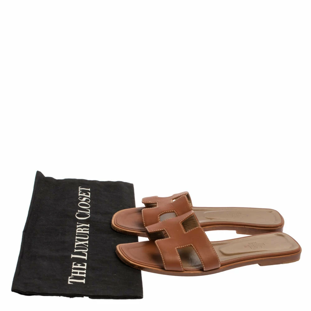 Put your best foot forward this season in these pretty Hermes sandals. These Oran sandals have been crafted from leather in Italy, and they feature the iconic H on the vamps and insoles meant to provide comfort at every step. These sandals are sure to attract admirers!
