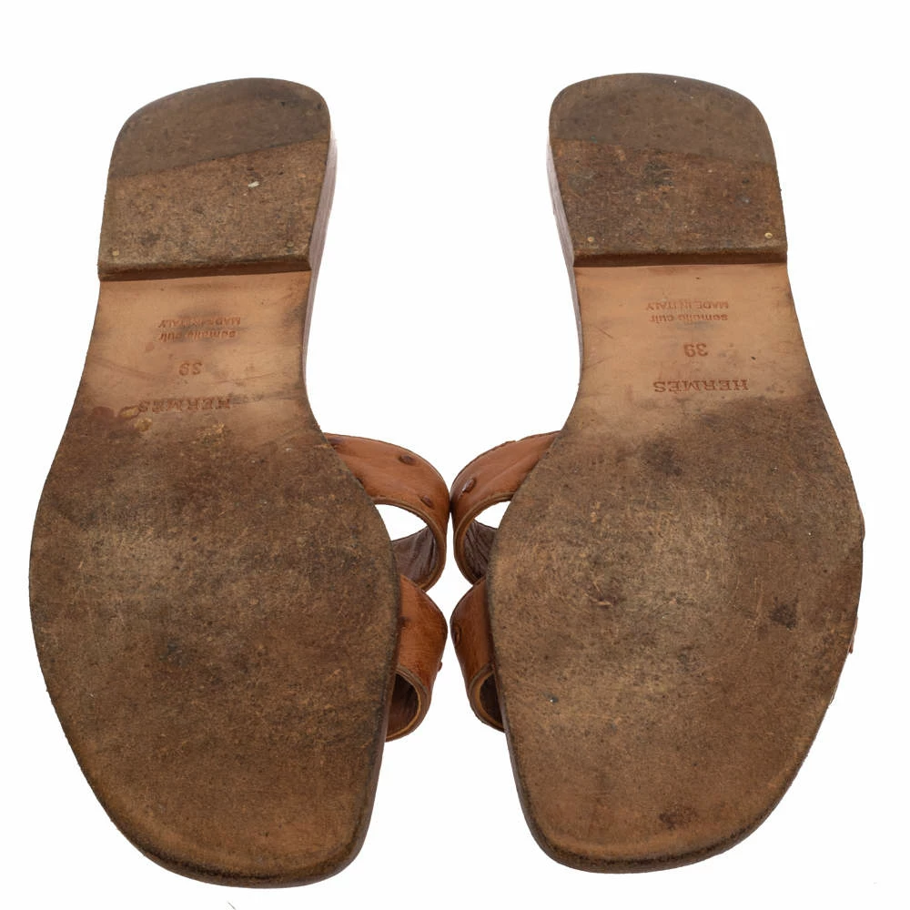 Put your best foot forward this season in these pretty Hermes sandals. These brown Oran sandals have been crafted from exotic ostrich leather in Italy and they feature the iconic H on the vamps as well as insoles meant to provide comfort at every step. These sandals are sure to attract admirers! (NOTE: FOR UAE CUSTOMERS ONLY)