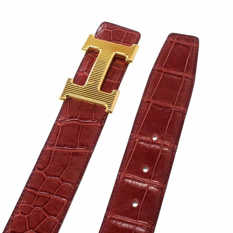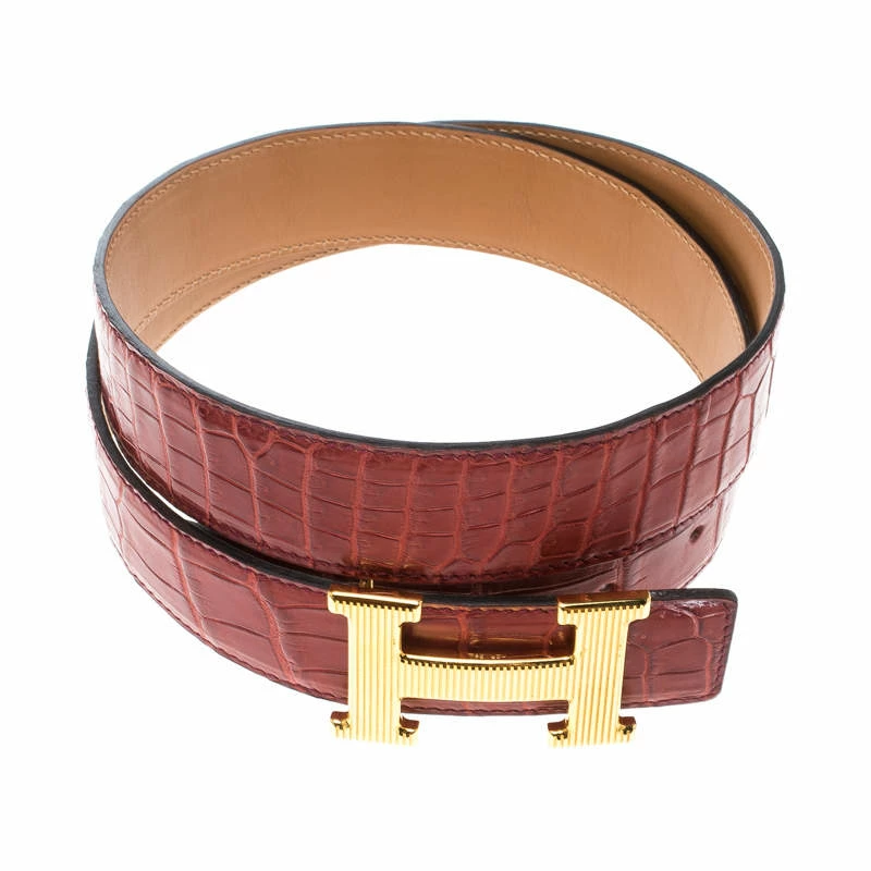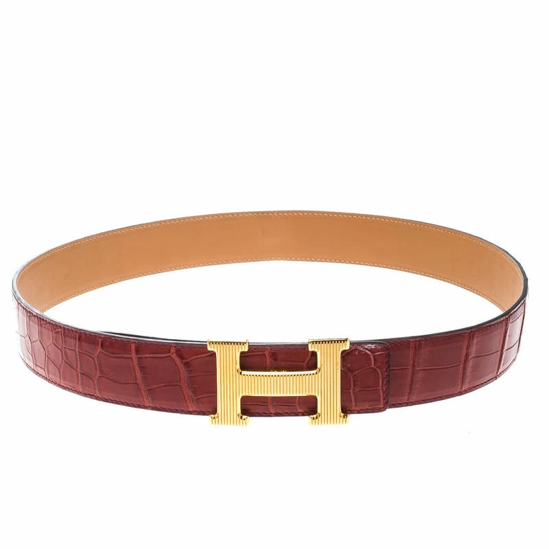 A celebrated design from the range of accessories by Hermès is their H buckle belts. They are worn by celebrities and fashion lovers around the world. Here, we have an exotic version, excellently made from brown Porosus Crocodile leather. It is high in value and minimal in design. The belt is finished with a gold-grooved H buckle and overall, it gives off a truly authentic and luxurious feel.