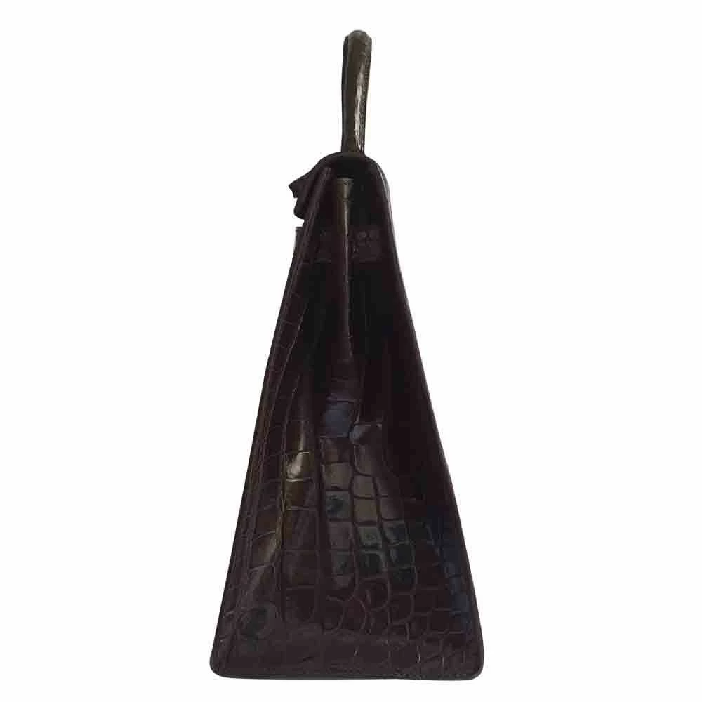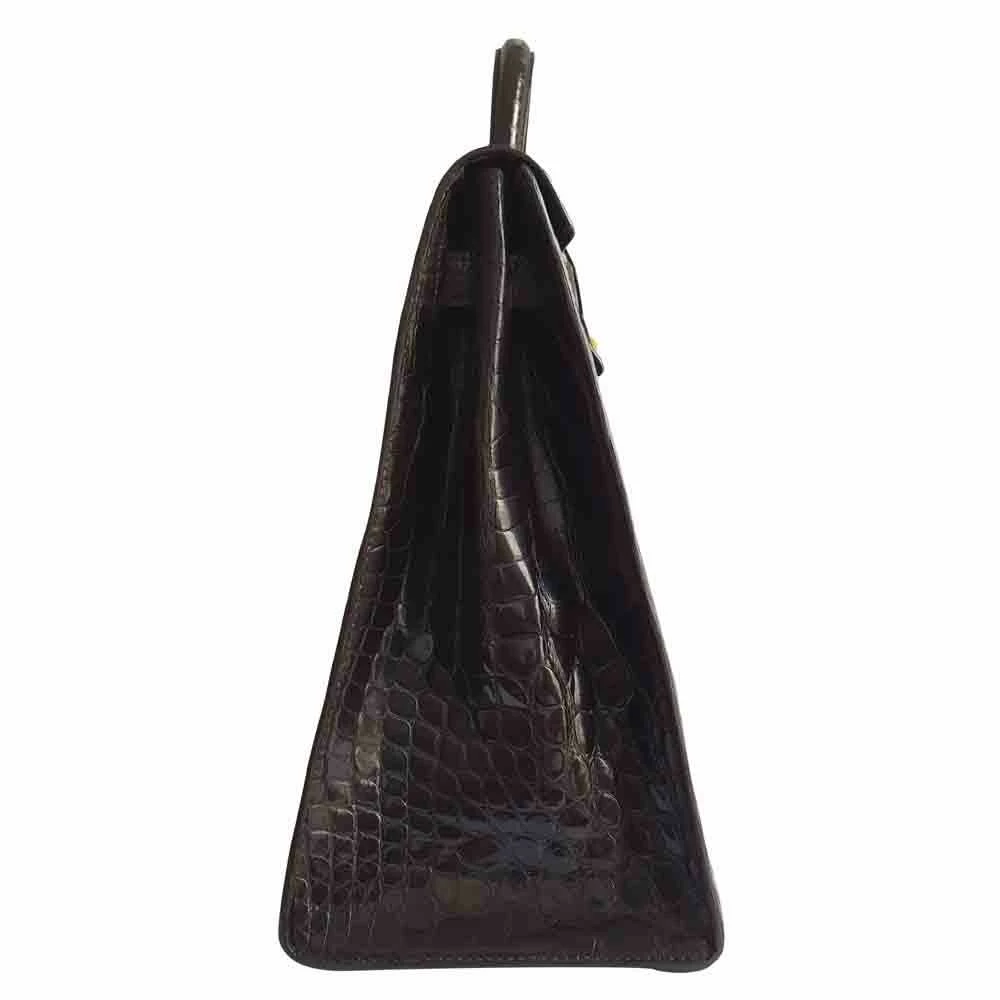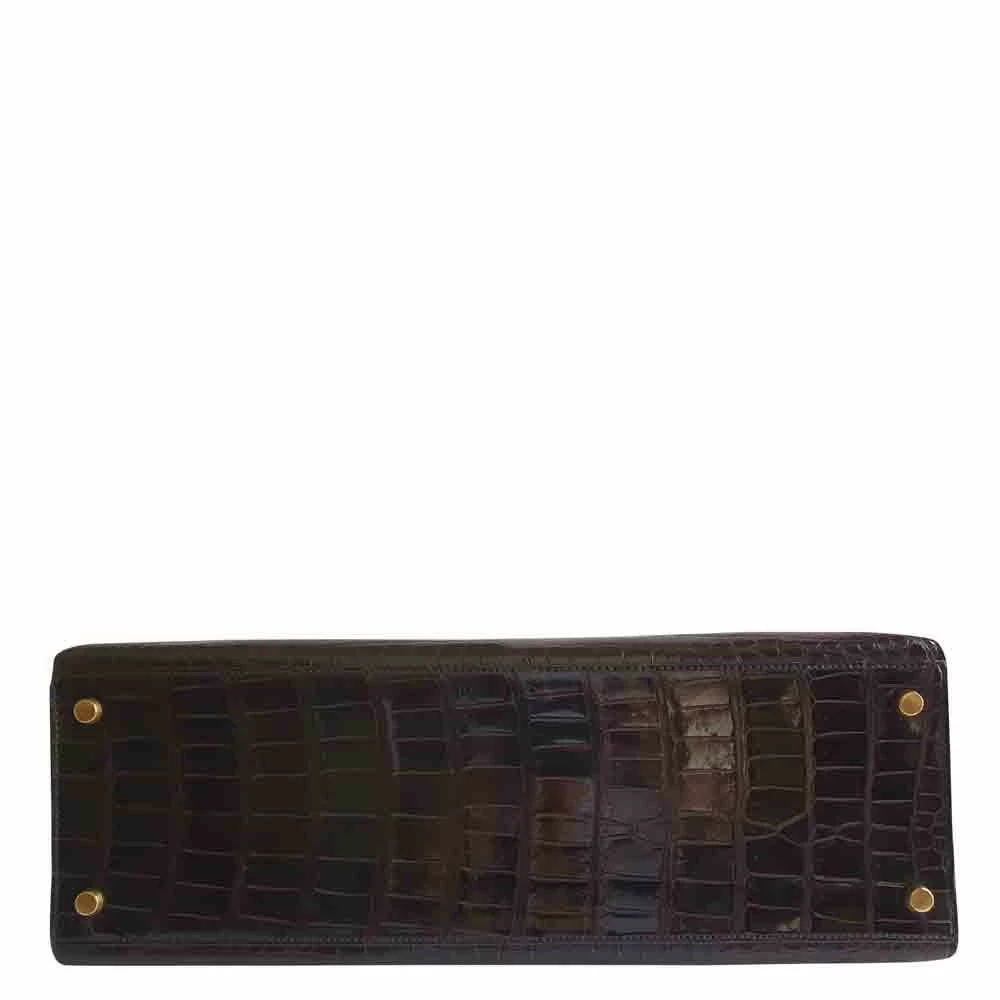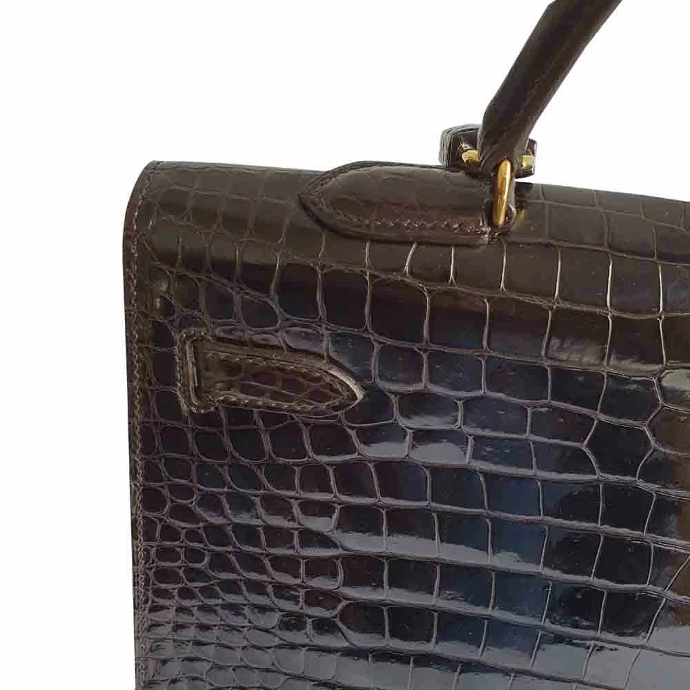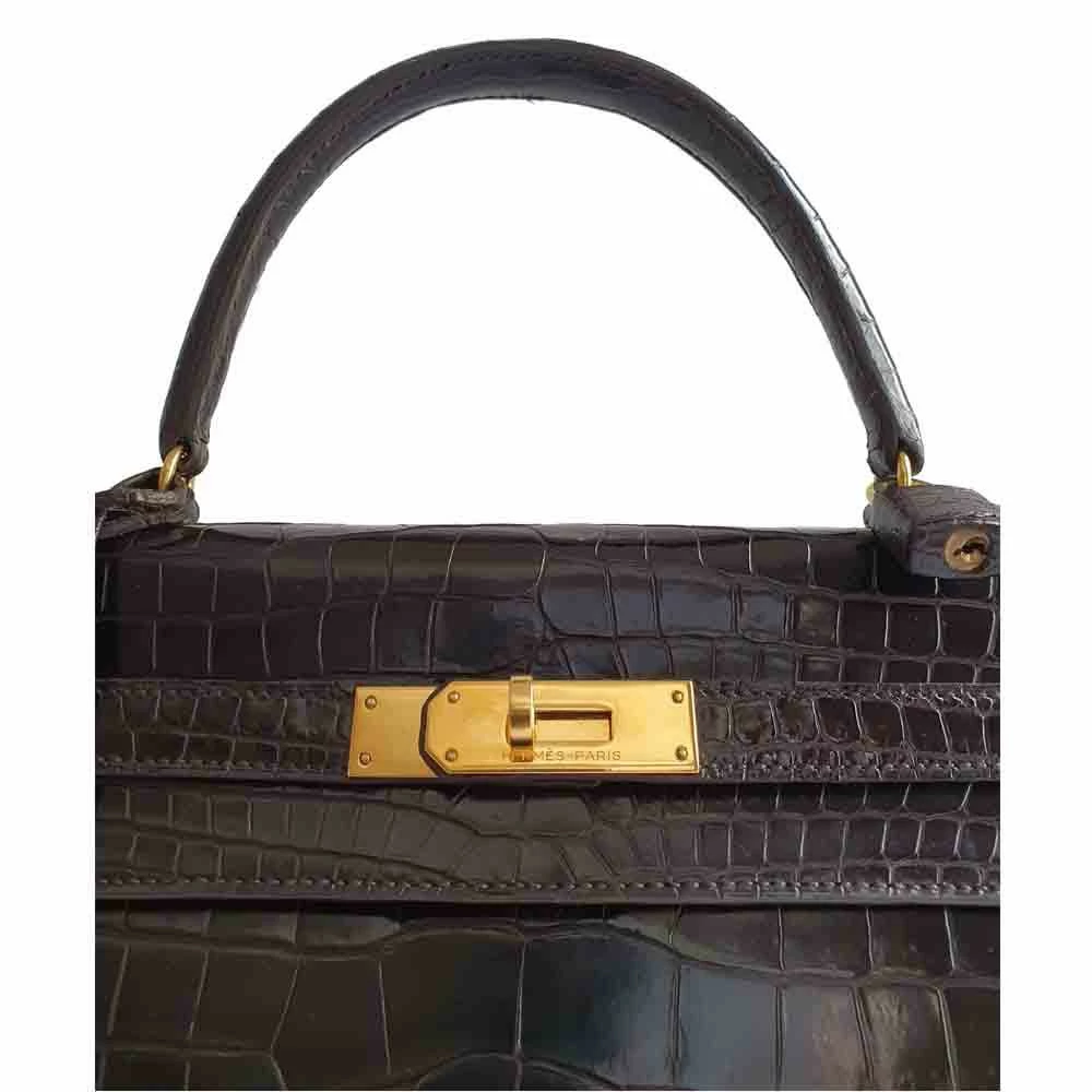 A symbol of class and elegance, this iconic Hermes Kelly bag deserves to be yours. Crafted from crocodile leather, this brown Kelly features a gold-finished turn-lock closure, a single top handle, and a padlock with key. Aptly sized, it houses enough space to easily carry all your essentials. Note: Available for UAE customers only
