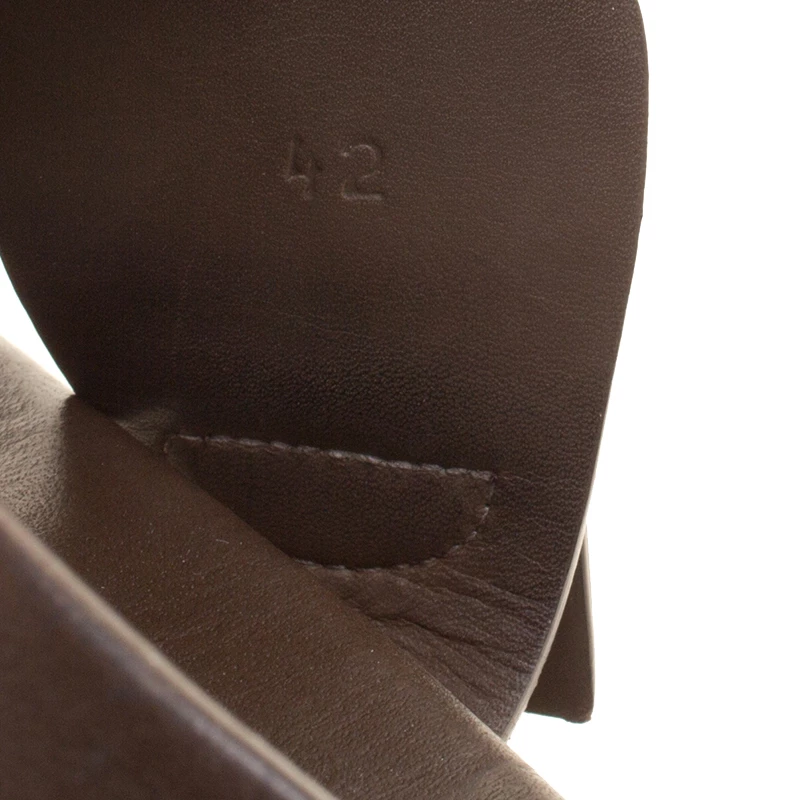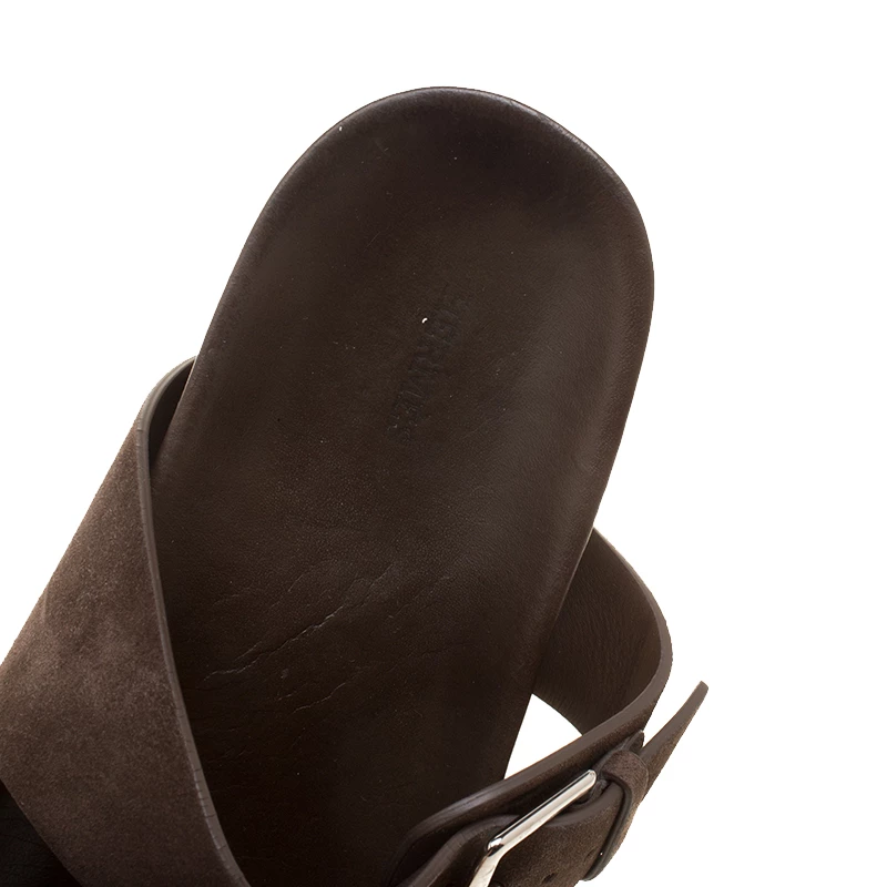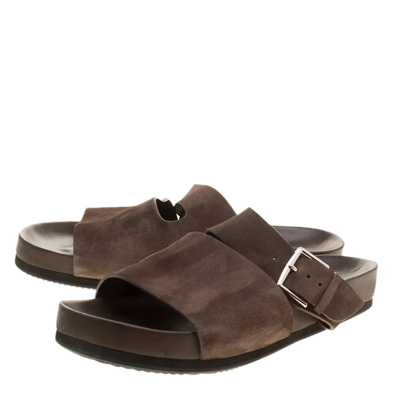 These trendy slides from Hermes are just the ideal choice for a relaxed day out. They are designed with suede straps with a buckle on one. The flats are complete with soles that will provide you with great comfort.