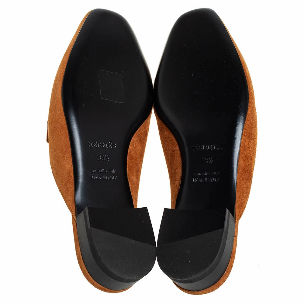 Mules have become the season’s most coveted trend and we can see why. They are super comfortable, classy, and can work with a variety of looks. These by Hermes are crafted from brown suede and feature the logo accent on the vamps. They are made luxurious with leather lining and short block heels.
