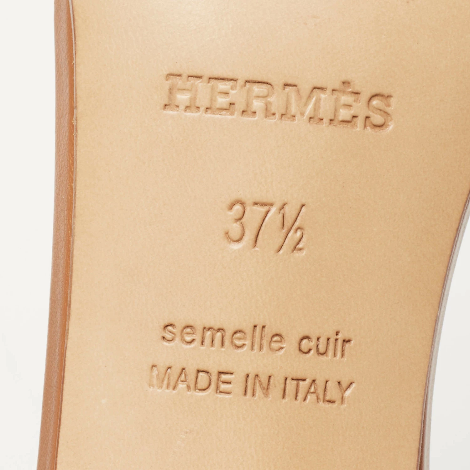 These Hermes sandals own a fresh and classy appeal. Crafted from leather, they exhibit an ankle buckle closure, a wide strap on the vamps, and 5cm heels. The silver-tone accents add to the charm of the pair.