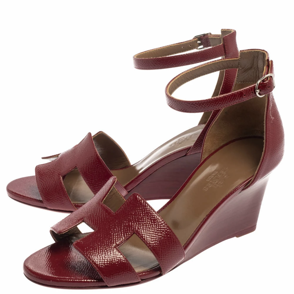 These Hermes sandals will bring you the perfect amount of style and comfort. They are crafted from leather and designed with the signature ‘H’ on the vamps. They are equipped with buckled ankle straps, leather-lined insoles, and 7 cm wedge heels. They are lovely and easy to flaunt.