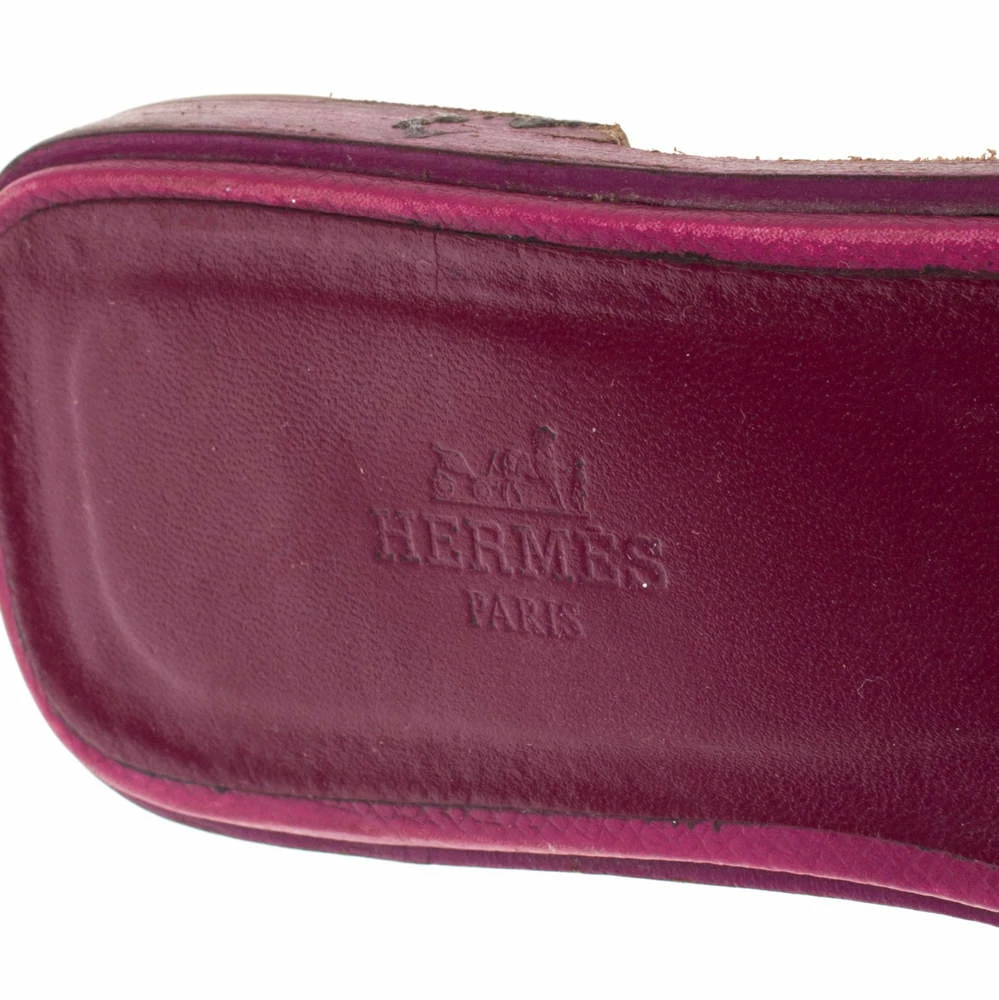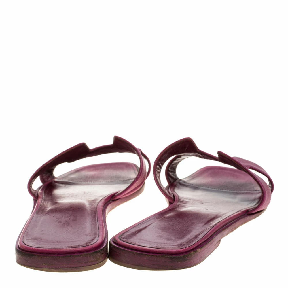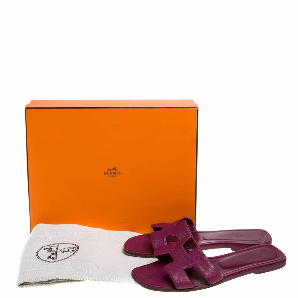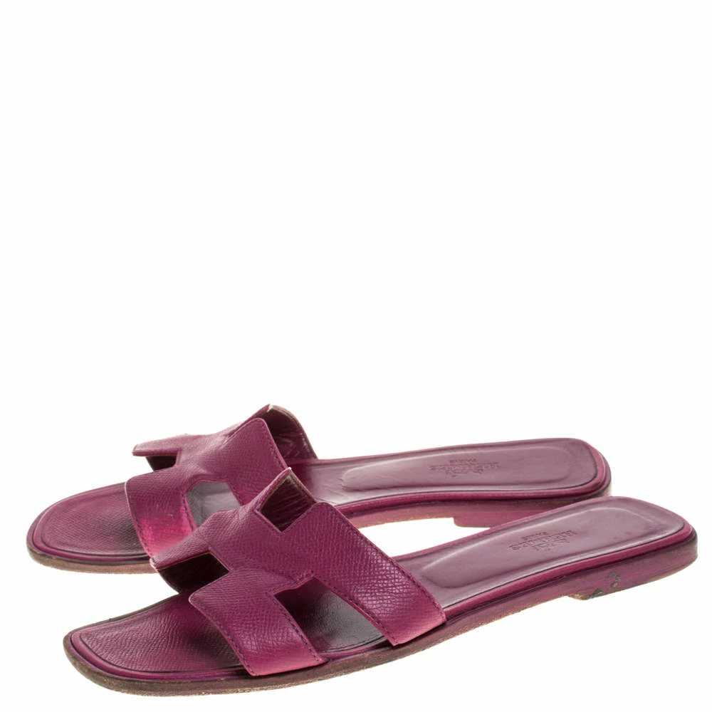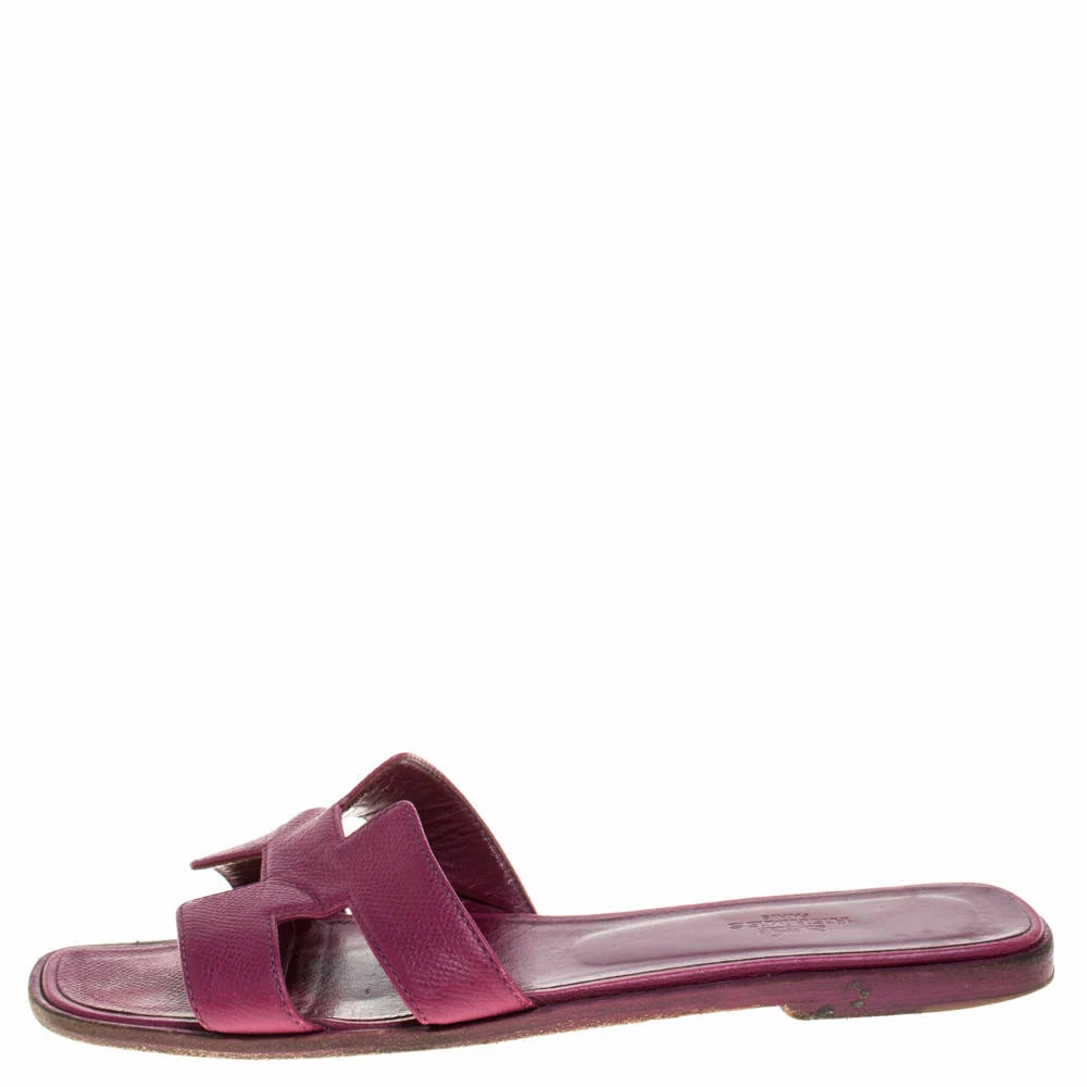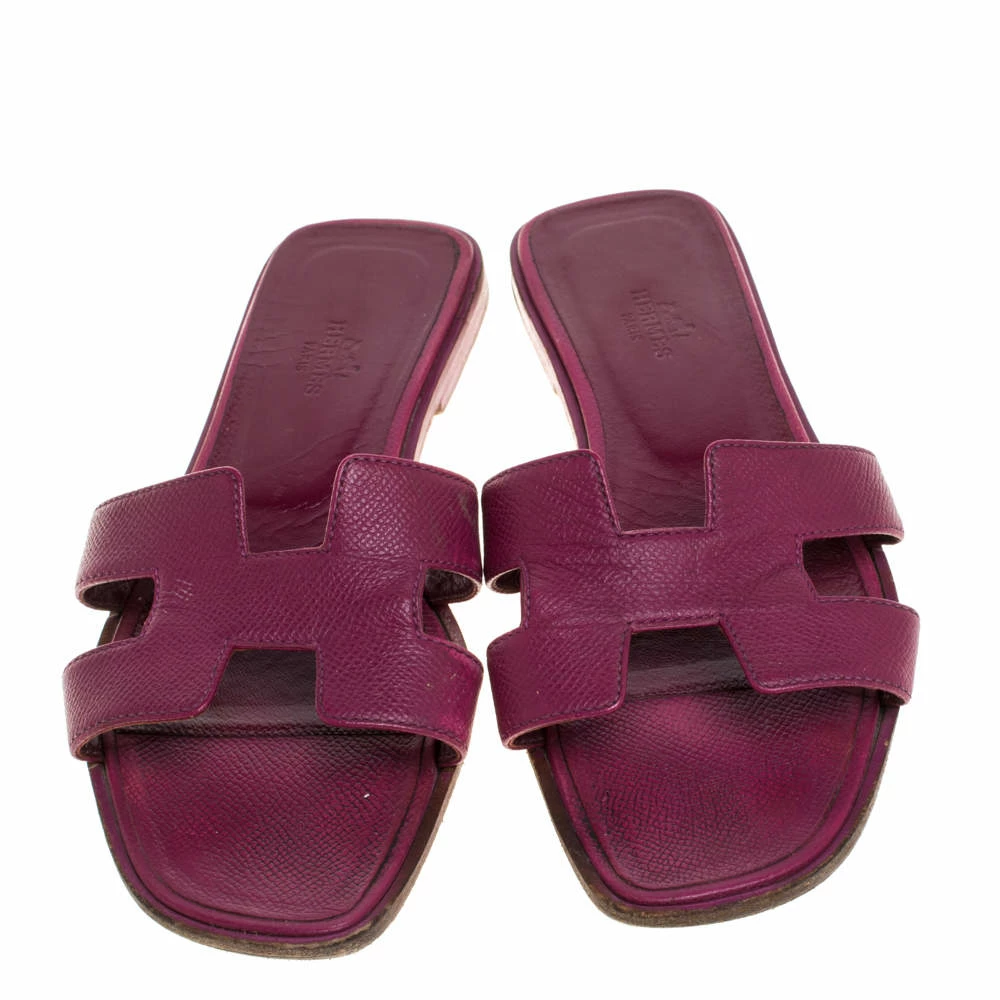 Put your best foot forward this season in these pretty Hermes sandals. These burgundy Oran sandals have been crafted from leather in Italy and they feature the iconic H on the vamps as well as insoles meant to provide comfort at every step. These sandals are sure to attract admirers!