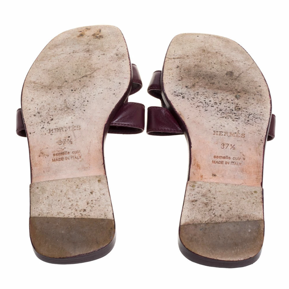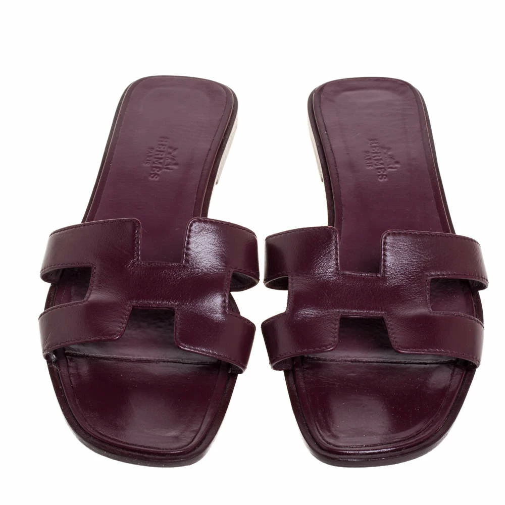 Put your best foot forward this season in these pretty Hermès flats. These burgundy Oran sandals have been crafted from high-quality leather in Italy and feature the iconic H on the vamps. The comfortable insoles meant to provide comfort at every step. These sandals are sure to attract admirers and will complement most of your attires.