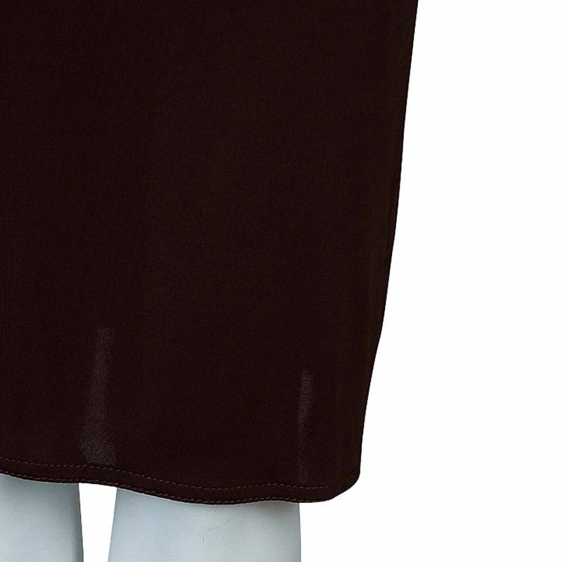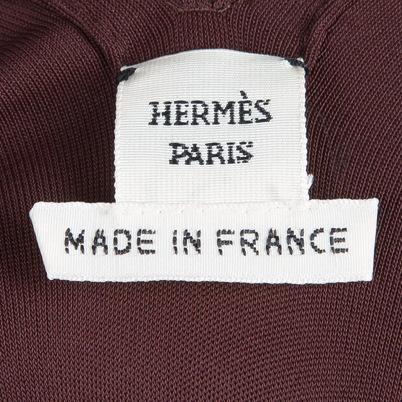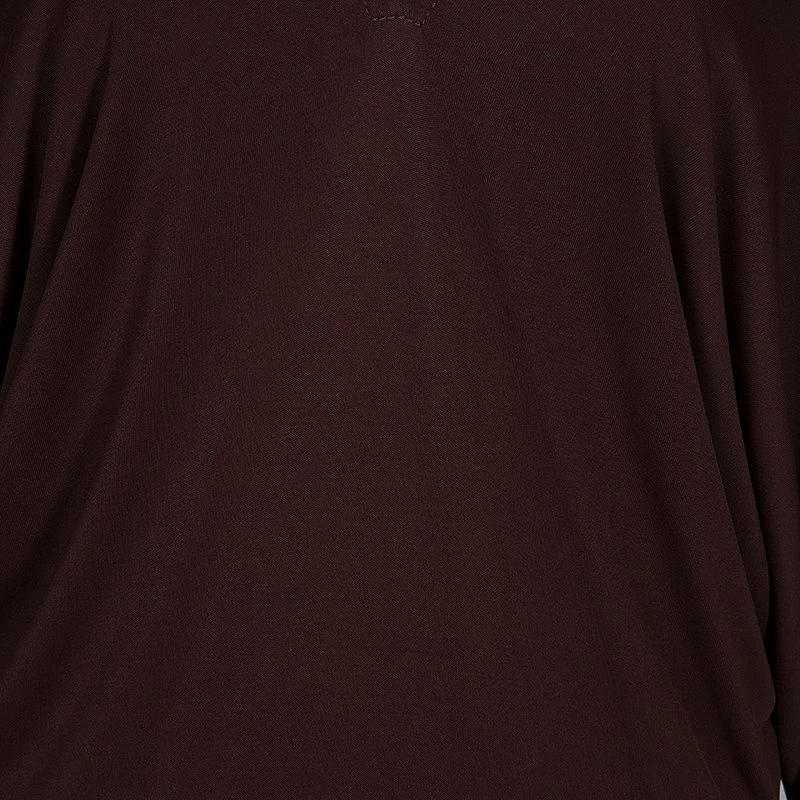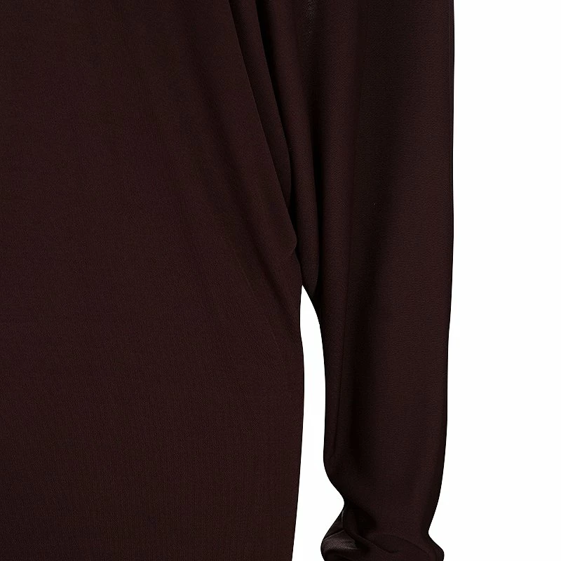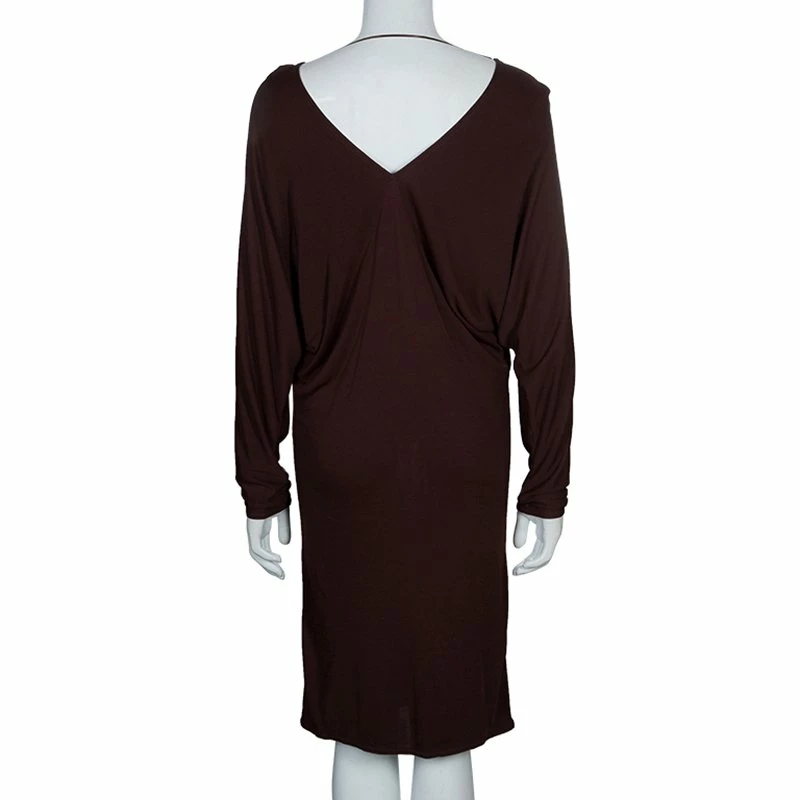 This Hermes dress is apt for your casual wardrobe and takes care of your comfort. The loose fit dress is cut from viscose and has burgundy color. It features broad V-neckline and a back string to hold it in place, long sleeves and knee length straight hem.