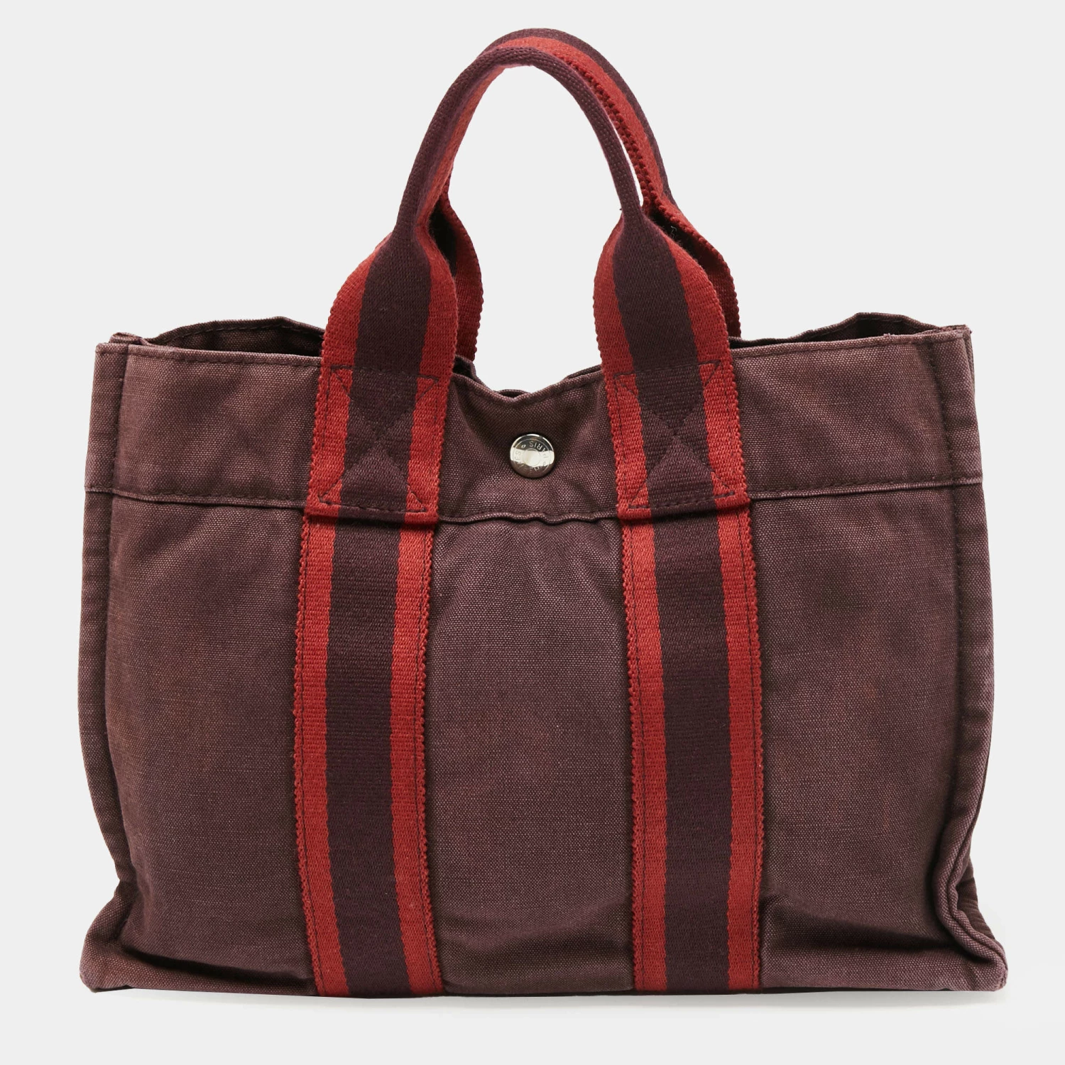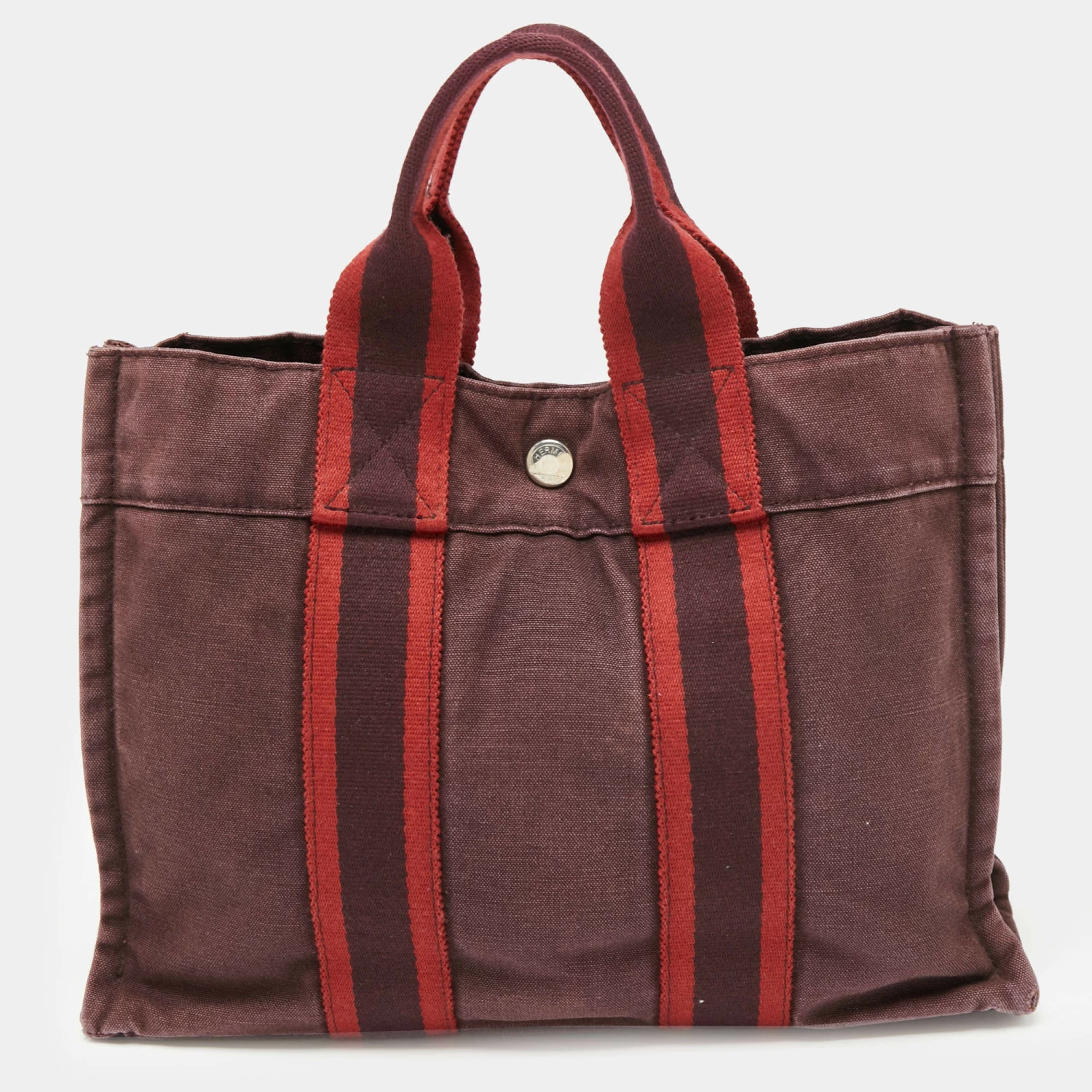 This Fourre-Tout PM bag from the house of Hermes is a reliable classic, perfect to keep your style high and to hold your daily essentials. Finely crafted from canvas, it features striped trims, expandable snap-buttoned sides, and double top handles. The snap-enclosed interior is lined with canvas.