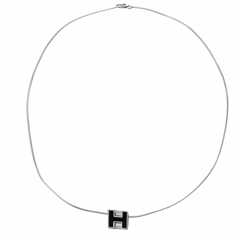 Combining black, white, and silver, this Hermes necklace will match with any outfit. Its cube-like design symbolized the Hermes H symbol, with a geometric beauty that will give your look a unique touch.