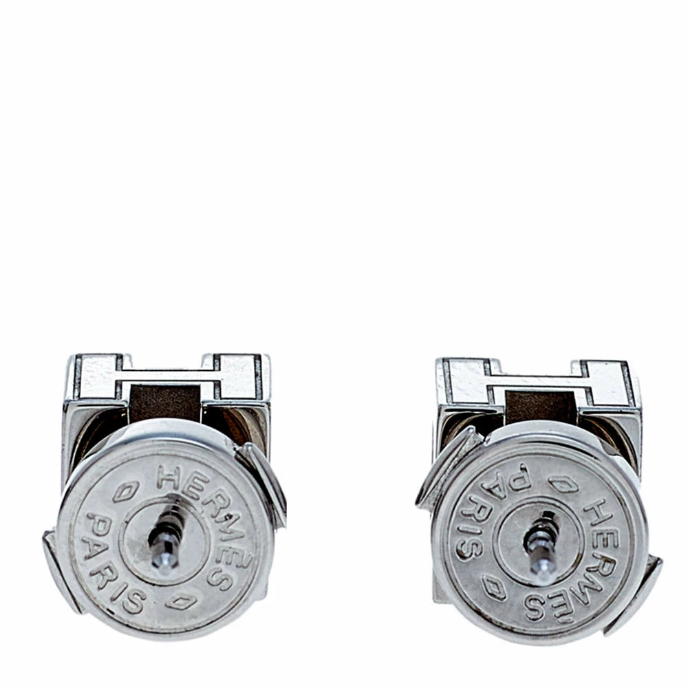 Stud earrings are an ideal pick for an effortless enhancement over any kind of ensemble. These Cage d’H studs by Hermés are just the right accessory to match up with any formal or casual wear. Sculpted in palladium-plated metal, they feature the brand’s ‘H’ in orange enamel.
