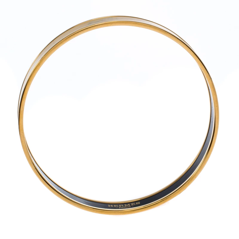 The house of Hermes brings to you a classy piece of jewellery to enhance your style. Crafted elegantly from enamel and gold-plated metal, this bracelet has a yellow coating all over and the logo print on the front. This creation is a smart way to make a style statement that makes you stand out from the crowd.