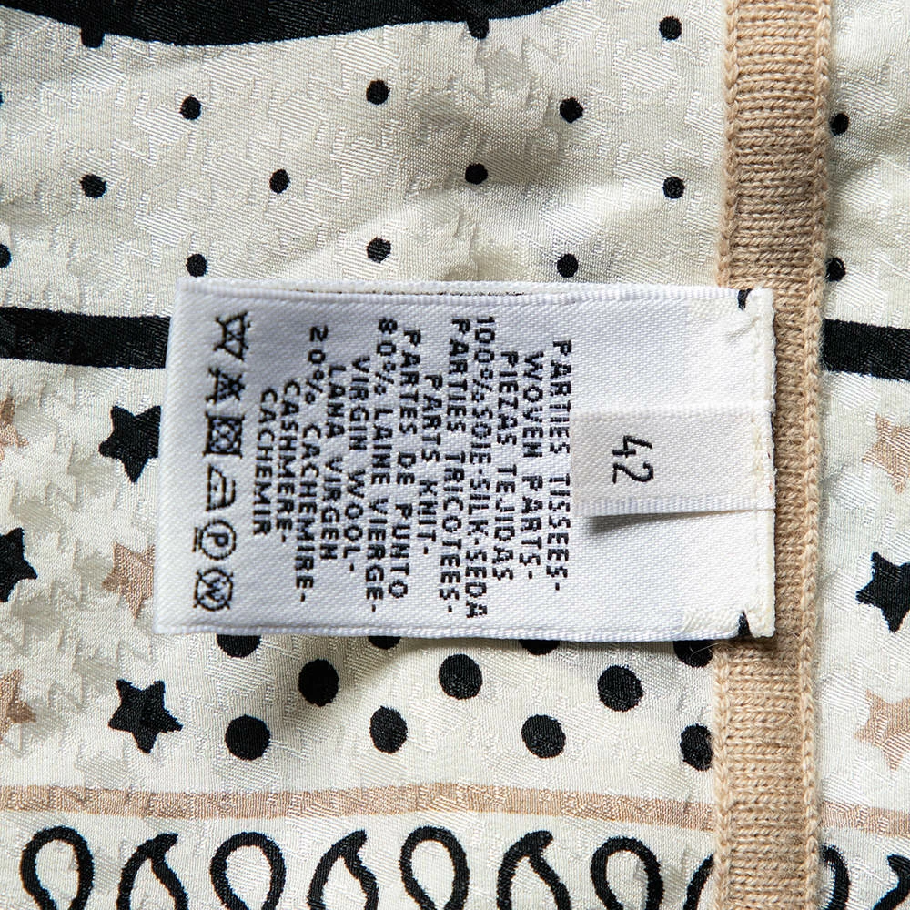 Some pieces remain timeless and elegant in their style. This cardigan from Hermes is one such creation that is eternally graceful and lends a subtle vibe to your look. It flaunts a blend of camel brown printed silk and wool and is fitted with a zipper on the front.