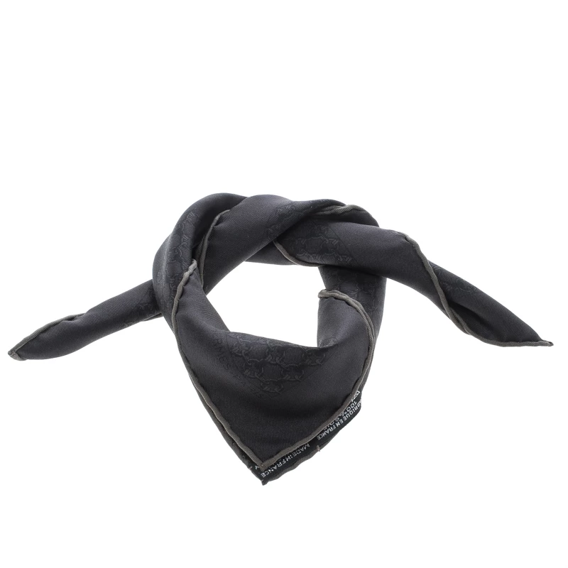Beautifully cut from silk, this Hermes piece features Horsebit prints, plain borders and hemmed edges. Make this lovely pocket square yours today, and accessorise it with your suits.