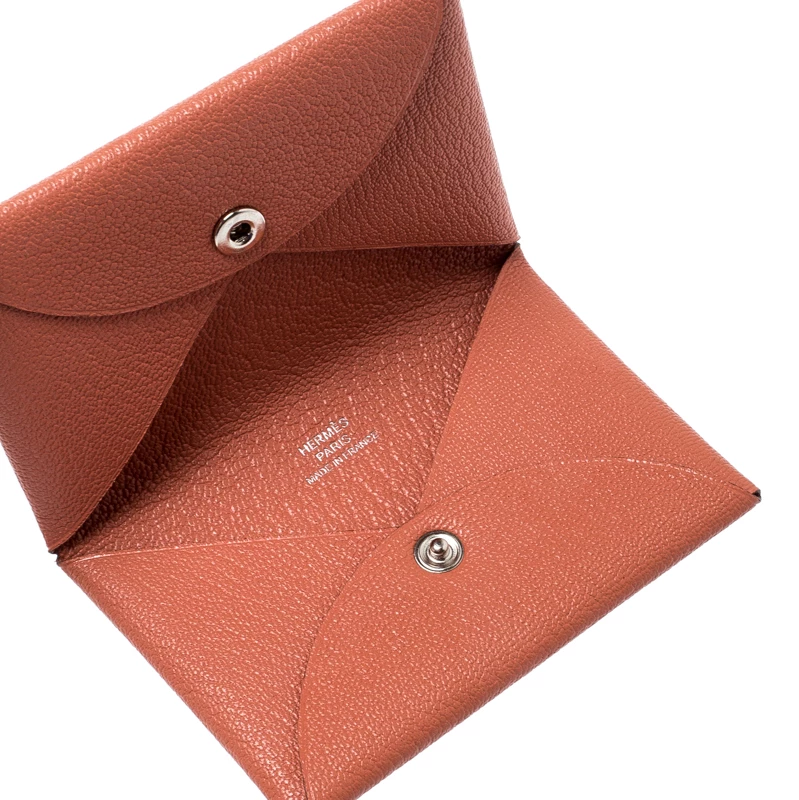 This Calvi card holder from Hermes is a perfect combination of sophistication and utility. Crafted from leather, the sleek piece has two slots to stow your essential cards in place and it flaunts a silver-tone snap closure.