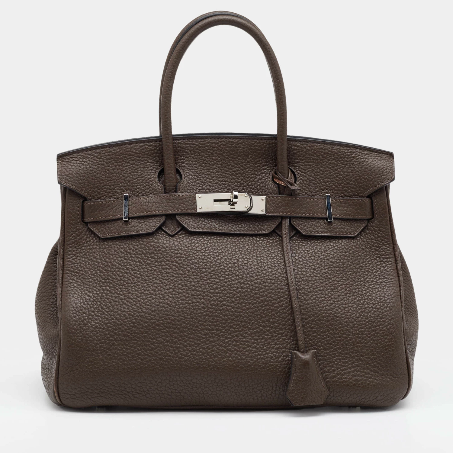 If you’ve wished to own an authentic Birkin, there is no better time to buy this coveted work of art than now. Here, we have this Chocolat Taurillon Clemence Birkin 30 just for you. Crafted in France from leather, the bag features dual top handles. In addition, the bag comes with palladium-finished hardware and a leather-lined interior to hold all your belongings. Durable and resistant to wear, the Birkin is an investment meant to last.