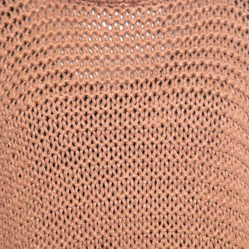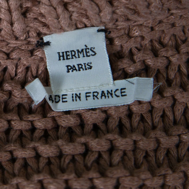Hermes brings you this lovely sweater to make you look very stylish and win compliments from one and all! The cinnamon brown creation is made of 100% linen in an open knit design and features a relaxed silhouette. It flaunts a boat neckline and batwing sleeves. Pair it with denims and ankle boots for your fashionable outings.