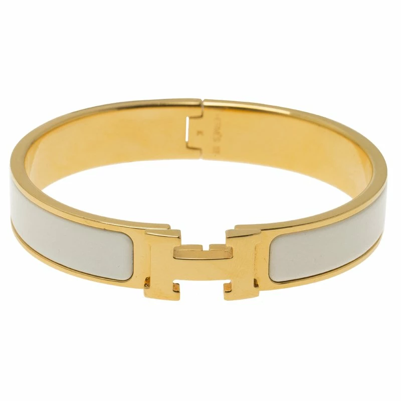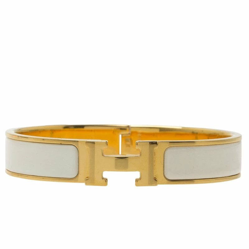 Let your jewelry speak for you with this Hermes white enamel narrow bracelet. This bracelet is made with gold-plated metal with enamel, and the cherry on top is the signature Hermes ‘H’ logo at the front. It will definitely amp up any outfit in your closet.