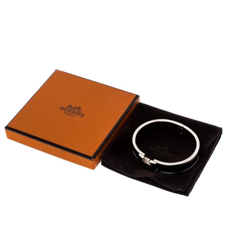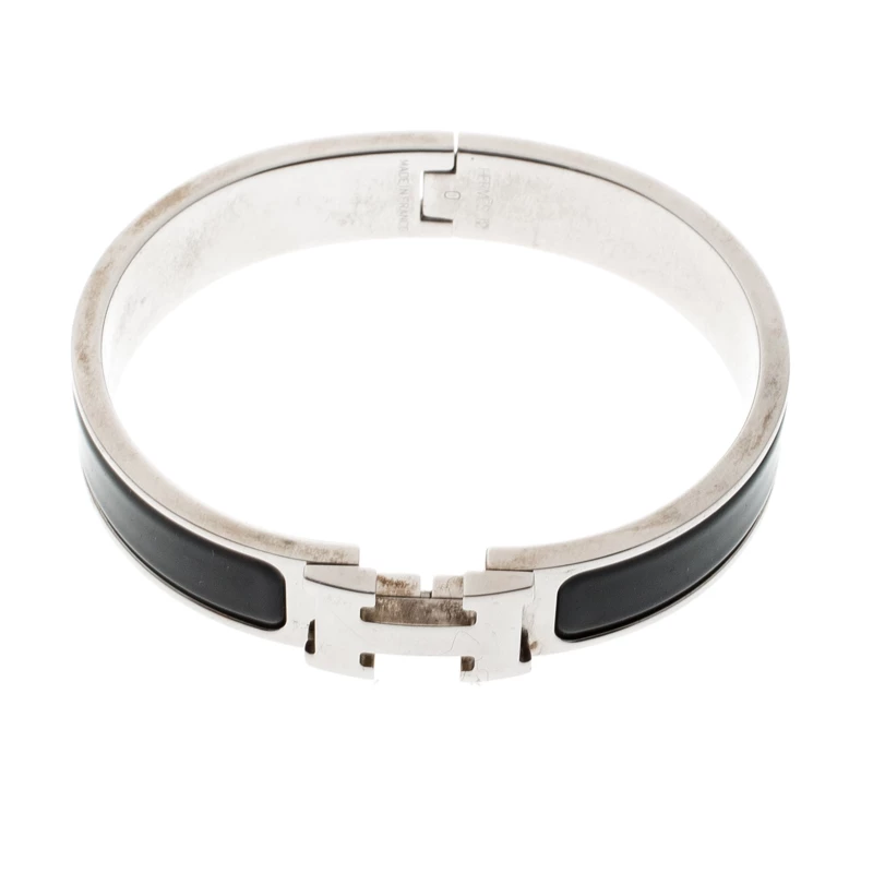 One of the most popular designs from Hermes when it comes to accessories is the Clic Clac. The Clic Clac H collection is a hit amongst fashionable women and it’s time you have one yourself. This piece has been crafted from palladium-plated metal and designed with black enamel and made complete with a swivel H.