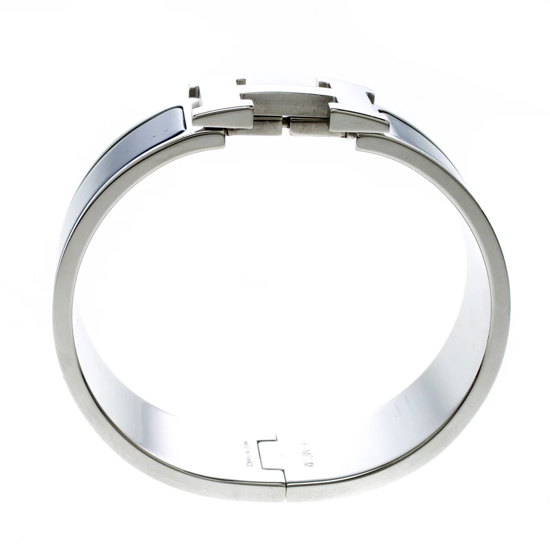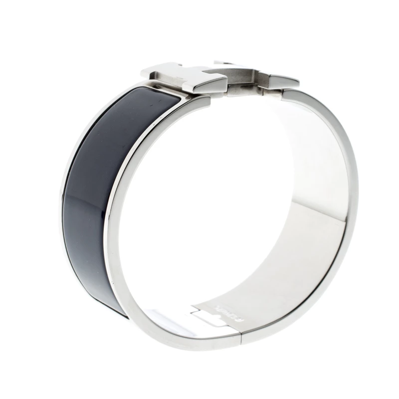 One of the most popular designs from Hermes when it comes to accessories is the Clic Clac. The Clic Clac H collection is a hit amongst fashionable women and it’s time you have one yourself. This piece has been crafted from palladium-plated metal and designed with navy blue enamel and made complete with a swivel H.