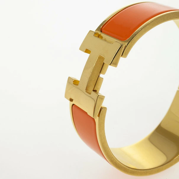 This Hermes bangle is a must have accessory. The bracelet is made from gold plated metal with orange enamel and the Hermes “H” charm decorating the lock. Get those compliments you longed for as you pair it with your everyday outfits!Original Retail Price: US $720